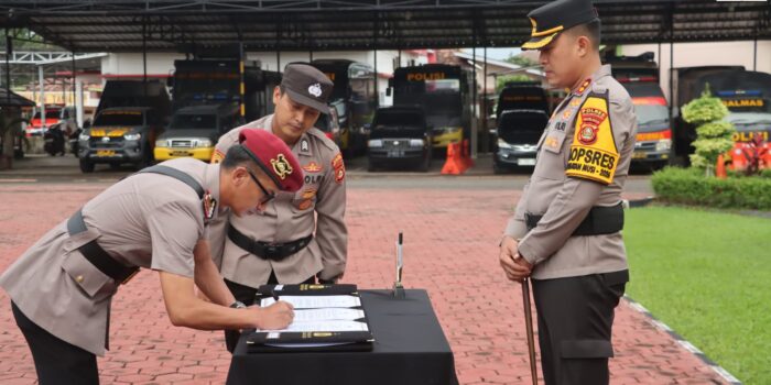 Liputanabn.com | MUBA – Kapolres Musi Banyuasin (Muba) AKBP Ruri Prastowo memimpin langsung upacara Serah Terima Jabatan (Sertijab) tiga Pejabat Utama (PJU) Media Nasonal Liputanabn.com