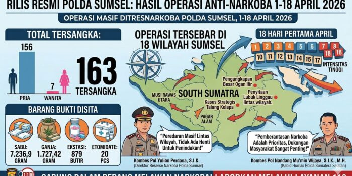 Liputanabn.com | PALEMBANG — Polda Sumatera Selatan mempertegas posisi strategisnya sebagai garda terdepan dalam menjaga stabilitas keamanan nasional melalui operasi pemberantasan narkotika Media Nasonal Liputanabn.com