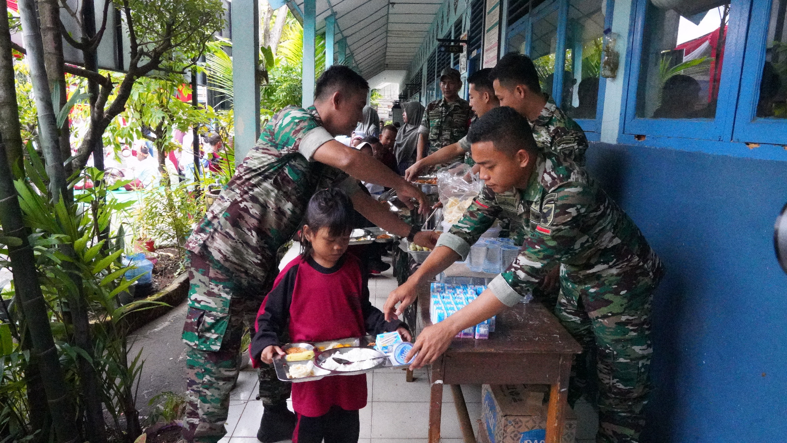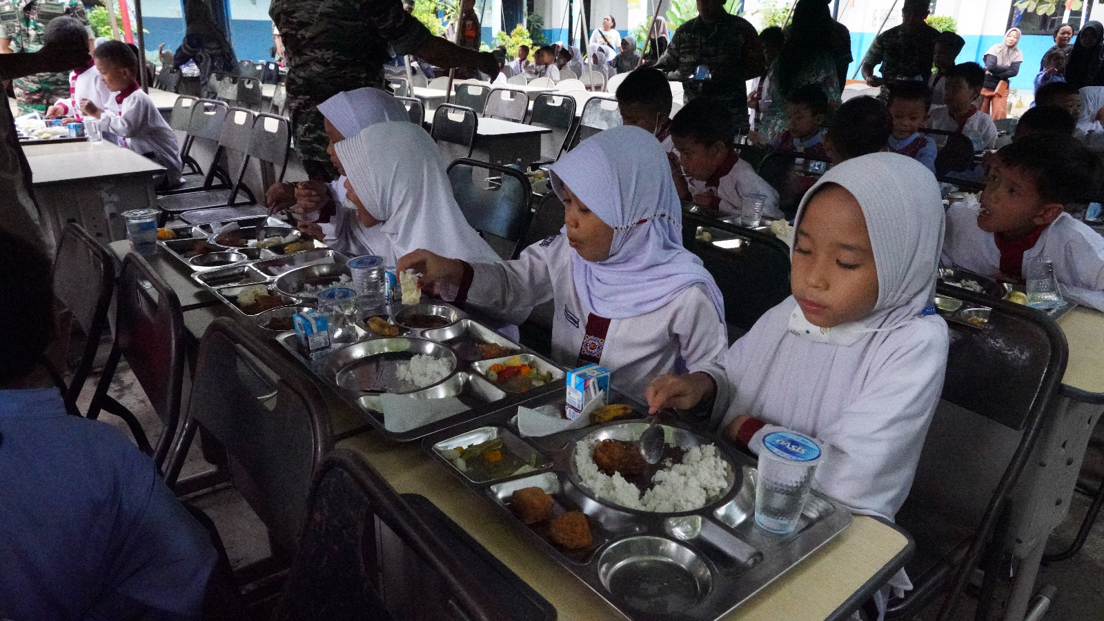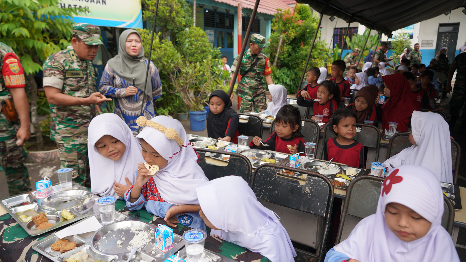 “Program yang dilaksanakan secara serentak setiap hari Jum’at ini menyasar sekolah-sekolah dasar untuk anak-anak didik, dengan memberikan makan bergizi di tambah buah-buahan dan susu,” ujar Kol Arh Sapta.