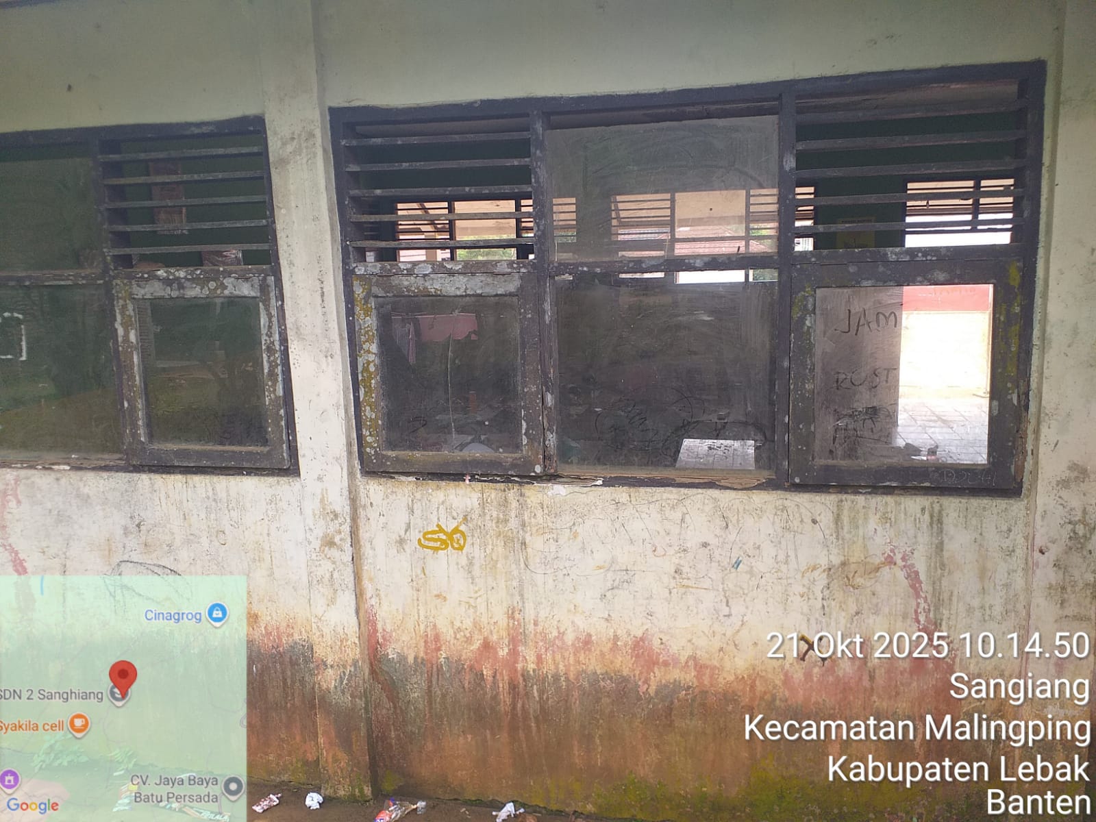 Liputanabn.com || Lebak-Banten. Rabu (22/10/2025) Sekolah Dasar Negeri 2 (SDN 2) Sanghiang Kecamatan Malingping Kabupaten Lebak-Banten sangat memprihatinkan,kondisi bangunan yang kumuh dengan atap banyak yang rusak dan berjatuhan ini lama tidak mendapatkan perhatian dari pemerintah.