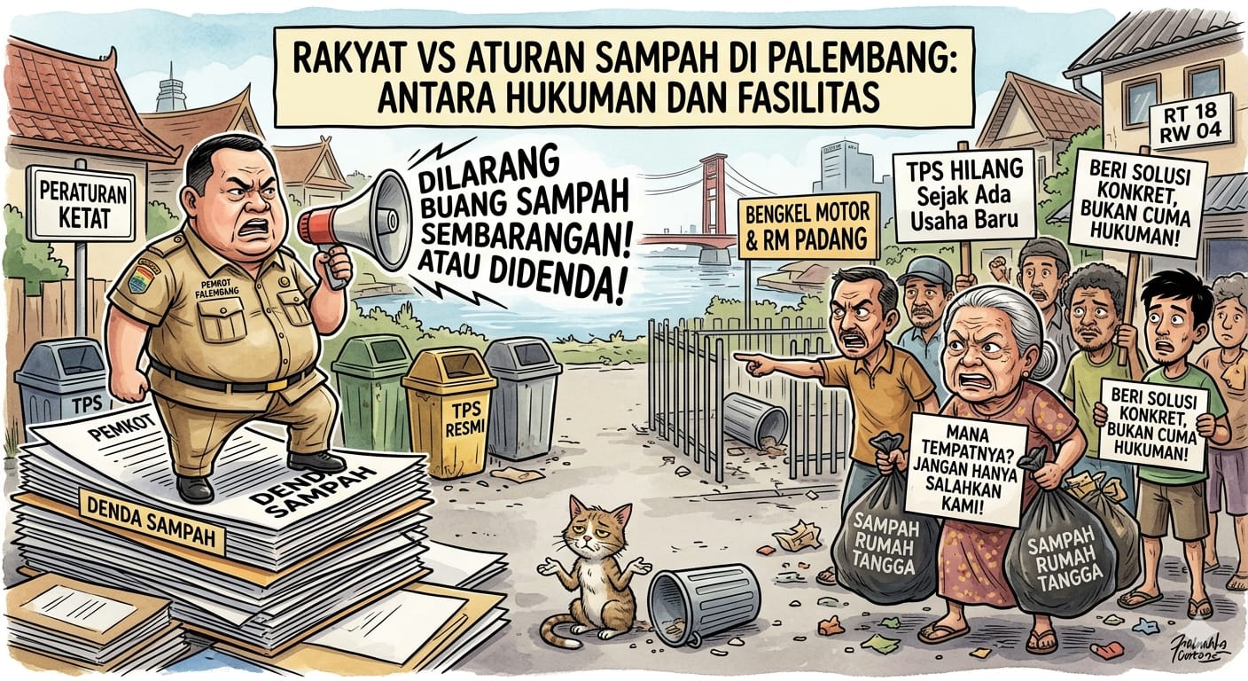 Liputanabn.com | PALEMBANG – Pemerintah Kota Palembang melalui jajaran di tingkat Kecamatan dan Kelurahan kembali menegaskan aturan ketat terkait pembuangan sampah. Hal ini tertuang dalam himbauan resmi yang disebarkan kepada seluruh warga, khususnya di wilayah Kelurahan Kemangagung dan sekitarnya, menyusul rapat yang dipimpin langsung oleh Walikota terkait penegakan hukum kebersihan lingkungan.