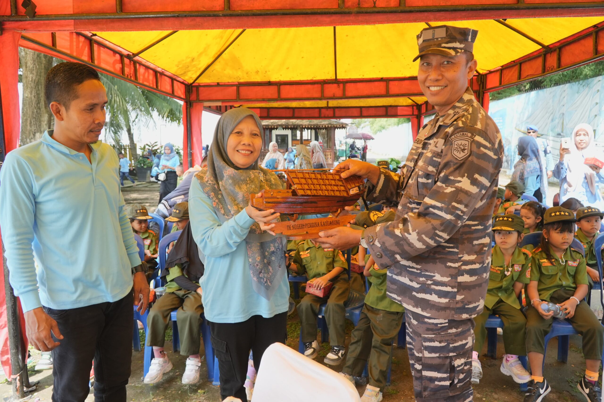 Mewakili Komandan Lanal (Danlanal) Palembang, Paur Binpuan Potmar, Letda Laut (K) Hendra Kesuma menyambut baik kunjungan yang dilakukan oleh TK Negeri Pembina Kayu Agung OKI.
