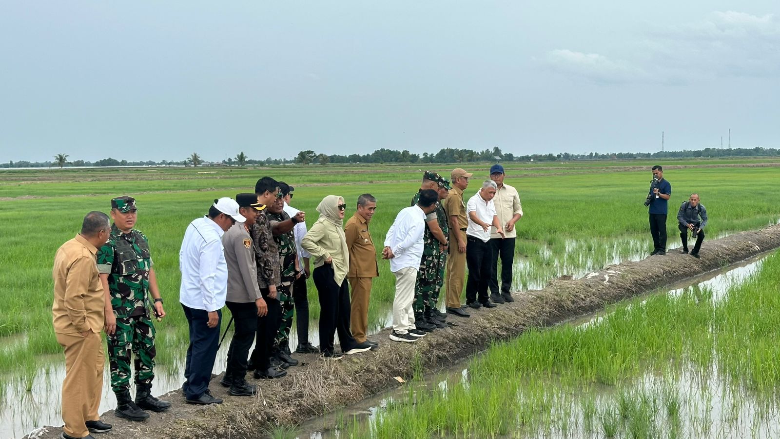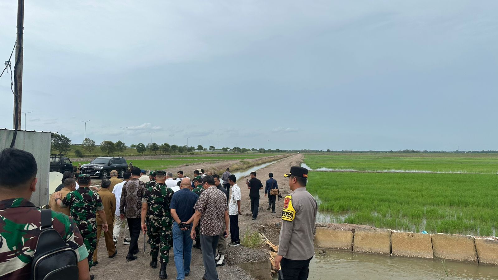 Setelah acara di Desa Arisan Jaya selesai, rombongan Wamen Pertanian melanjutkan agenda dengan meninjau lahan sawah milik PT. Buyung Putra Sembada di Desa Simpang Pelabuhan Dalam, Kecamatan Pemulutan.