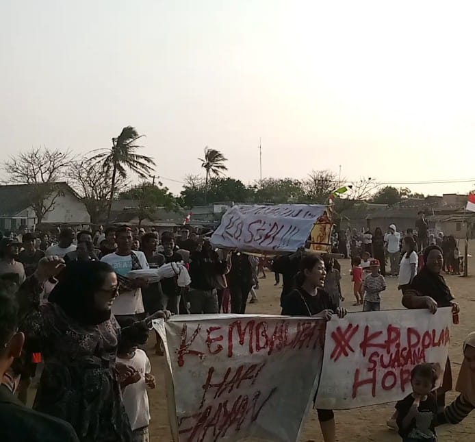 Masa yang terdiri dari para pemuda, pedagang, nelayan dan para musisi bergabung di alun alun desa muara, kecamatan wanasalam, kabupaten lebak banten.