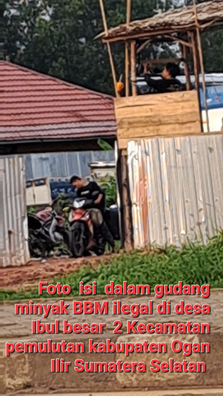 Liputanabn.com | Ogan Ilir – Palembang hasil tim investigasi Minggu, 26 November 2023 adanya temuan keberadaan lokasi gudang tempat kencingan bahan bakar jenis minyak (BBM ilegal) pada hari Minggu tanggal 26 November 2023 pukul 17.00 di