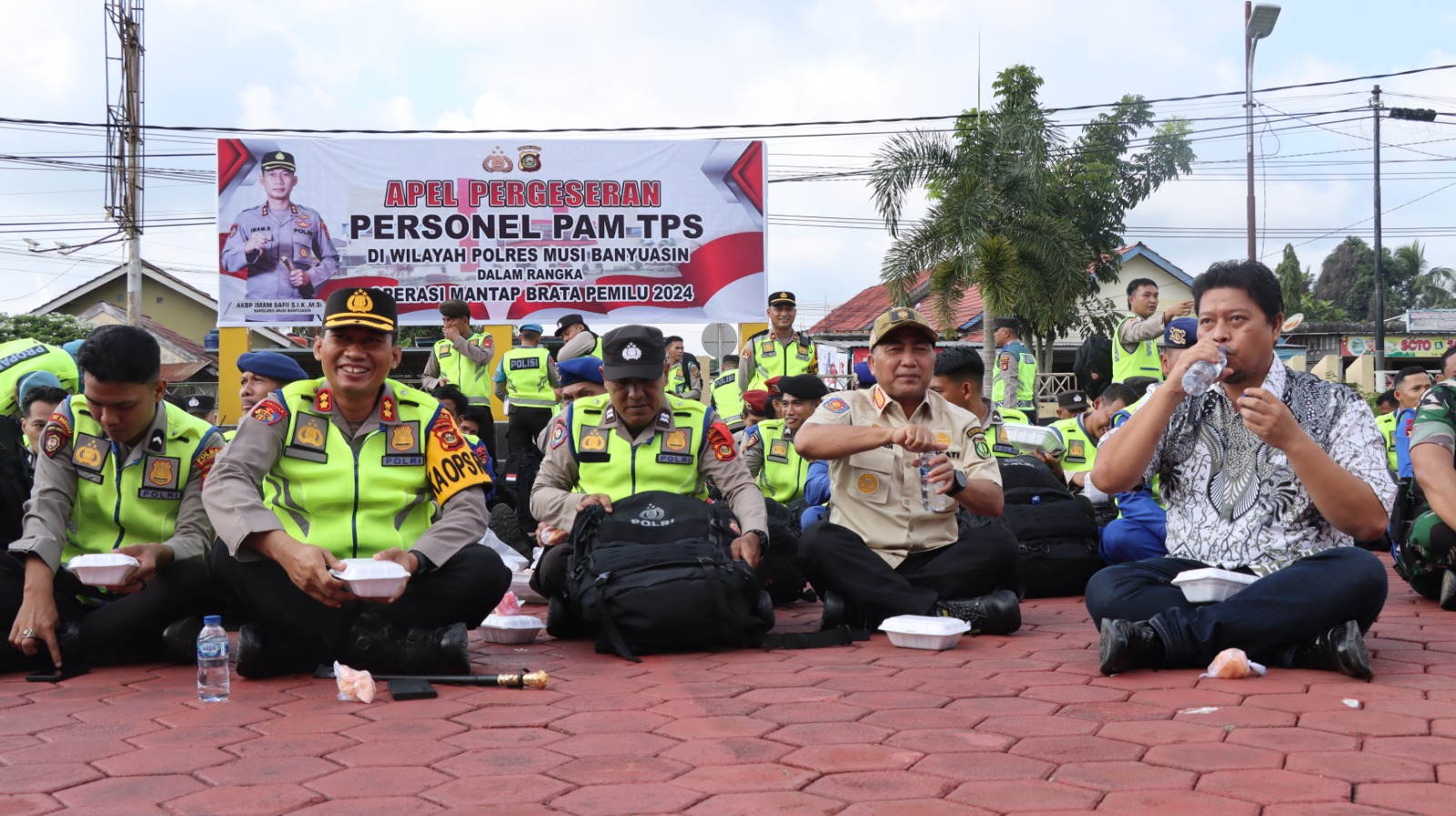 Liputanabn.com | MUBA – Anggota Polsek Lalan beserta seluruh personil polres Muba yang melaksanakan pengamanan di tempat pemungutan suara giat makan Bareng bersama Kapolres Muba AKBP Imam Safii, S.I.K, M.Si dan Pj Bupati Muba.