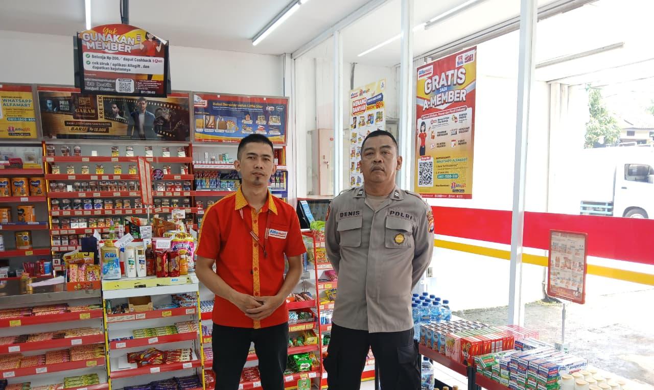 Liputanabn.com | Lebak-Anggota Polsek Rangkasbitung Polres Lebak,AIPTU Deni.S dan Terry.M.S,giat patroli dialogis, temui karyawan toko Indomaret.