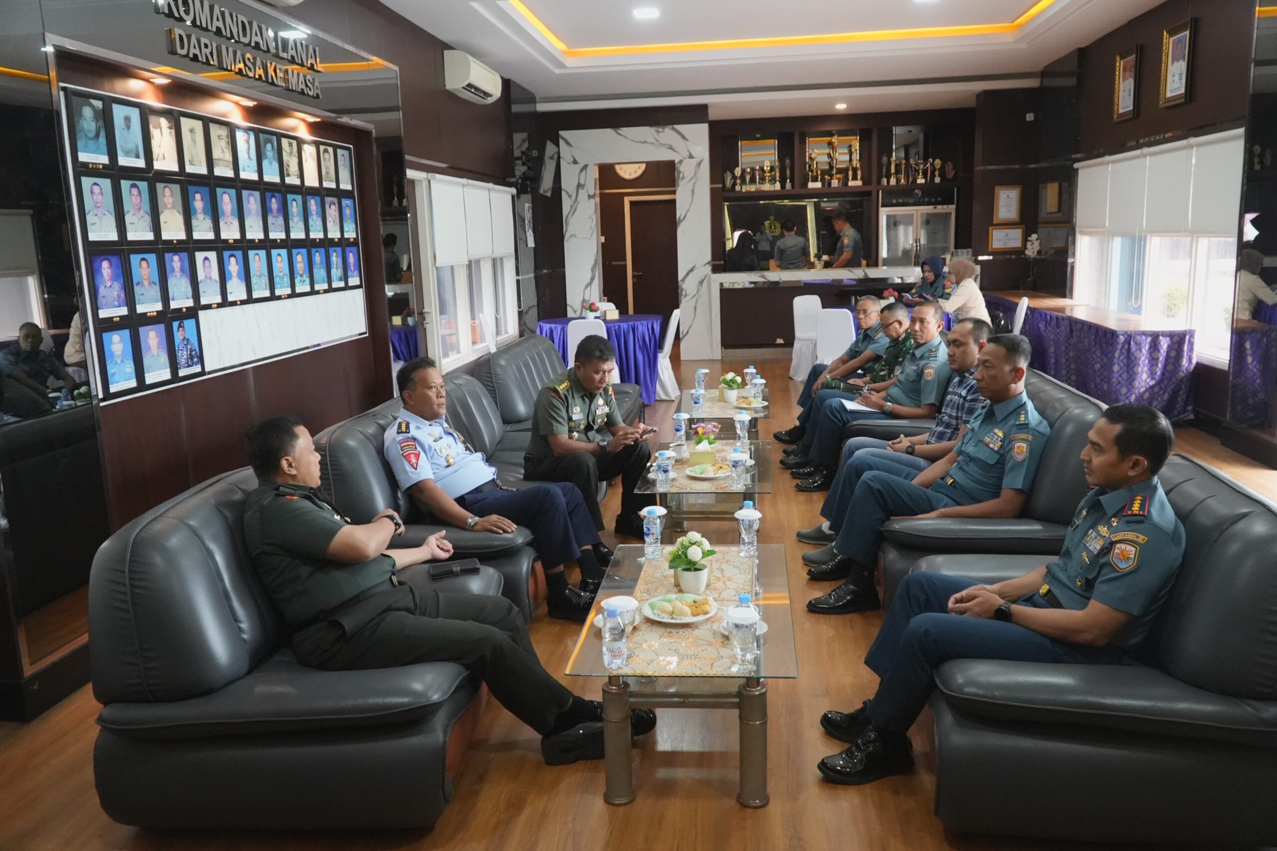 Audiensi yang dipimpin oleh Pa Sahli Tk. II LH Bid. Wassus & LH Panglima TNI Brigjen TNI Budi Suharto, S.I.P., M. Si, diterima langsung oleh Komandan Lanal (Danlanal) Kolonel Laut (P) Faisal, M Tr.Hanla.M.M.CRMP. beserta perwira staff di Sriwijaya Lounge.