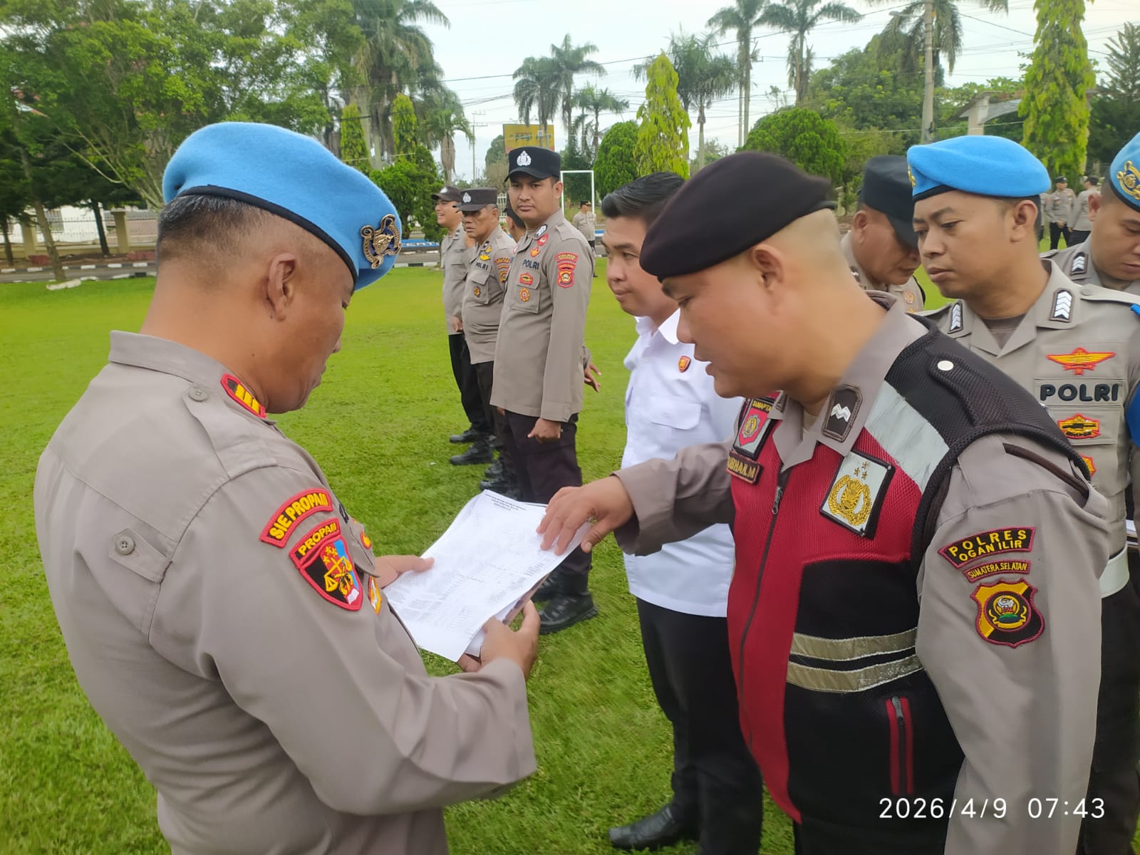 Liputanabn.com | Kamis, 09 April 2026 pukul 07.30 WIB, Polres Ogan Ilir melaksanakan kegiatan apel pagi dan absensi kehadiran personel yang dipimpin oleh Kasi Propam Polres Ogan Ilir, AKP H. Manurung.
