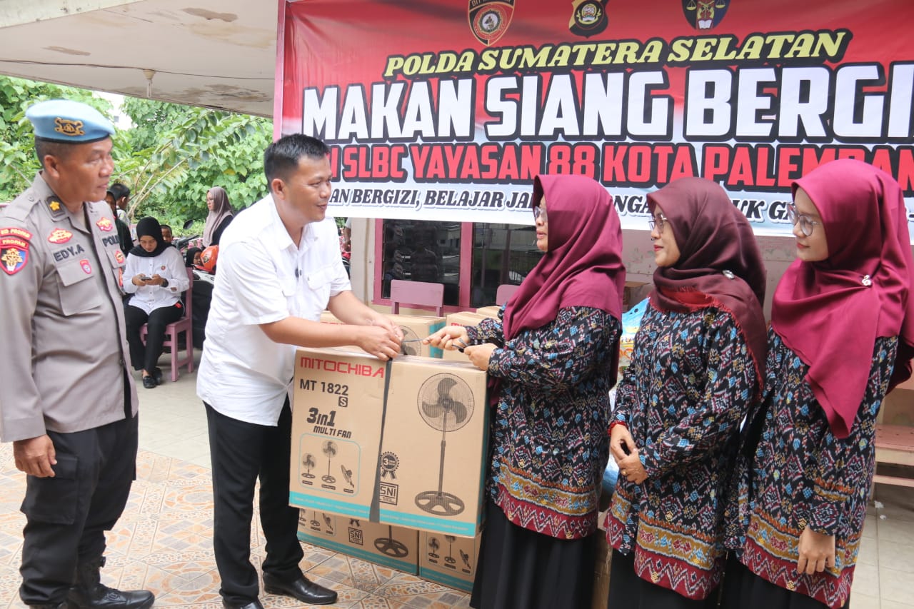 Dalam kegiatan ini, Polda Sumsel menyiapkan puluhan paket makanan yang dibagikan kepada semua pelajar di sekolah tersebut selain itu juga memberikan bantuan berupa sarana prasarana kelengkapan kelas diantaranya Kipas angin, beras dan sebagainya