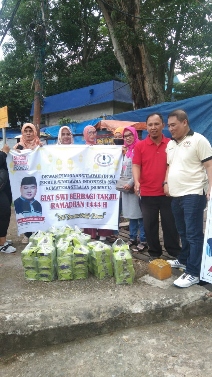 Liputanabn.com | Palembang – Di bulan suci Ramadhan 1444 H Sekretariat Bersama Wartawan Indonesia (SWI) DPW Sumatera Selatan melakukan bakti sosial dengan membagikan takjil ke sejumlah pengendara yang melewati Jalan Demang Lebar Daun Palembang, Sabtu 8 April 2023.