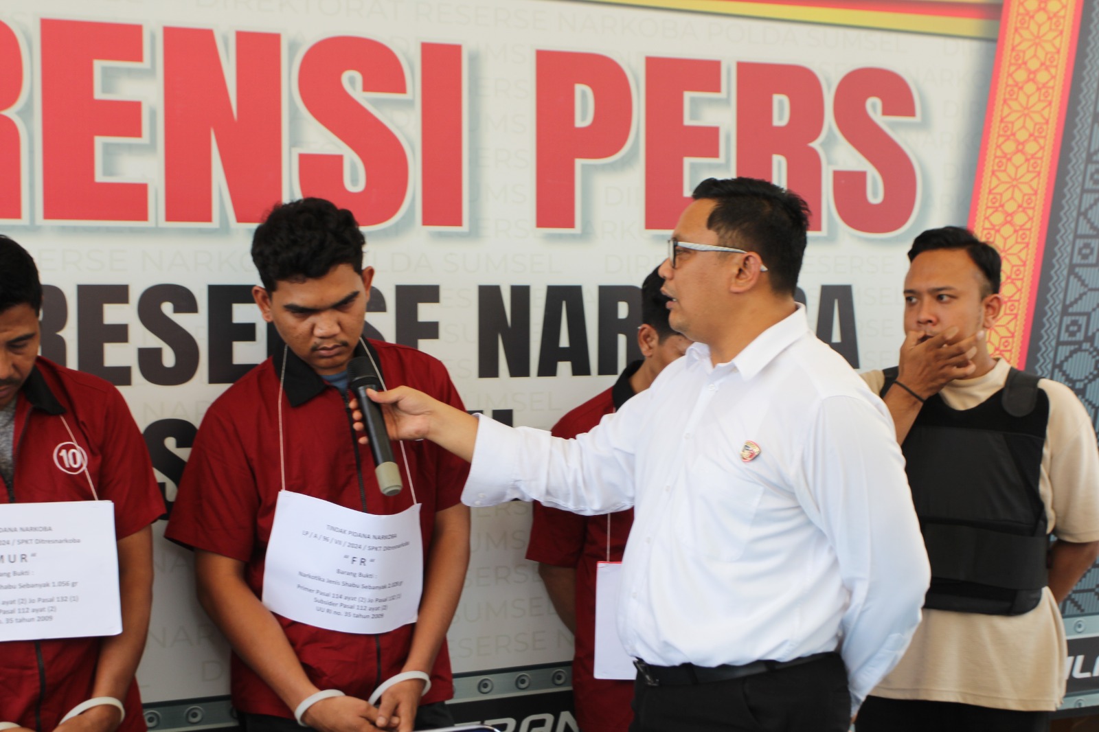 Wakil Direktur Reserse Narkoba Polda Sumsel AKBP Harissandi didampingi Kaur Pensat Subbid Penmas Bidhumas Polda Sumsel Kompol Menang, SH, MSi menuturkan penangkapan kelima tersangka berawal dari tersangka Rama Habibi yang lebih dulu ditangkap membawa 1 kilogram sabu-sabu di dalam mobil Sigra warna hitam nopol BG 1167 OU.
