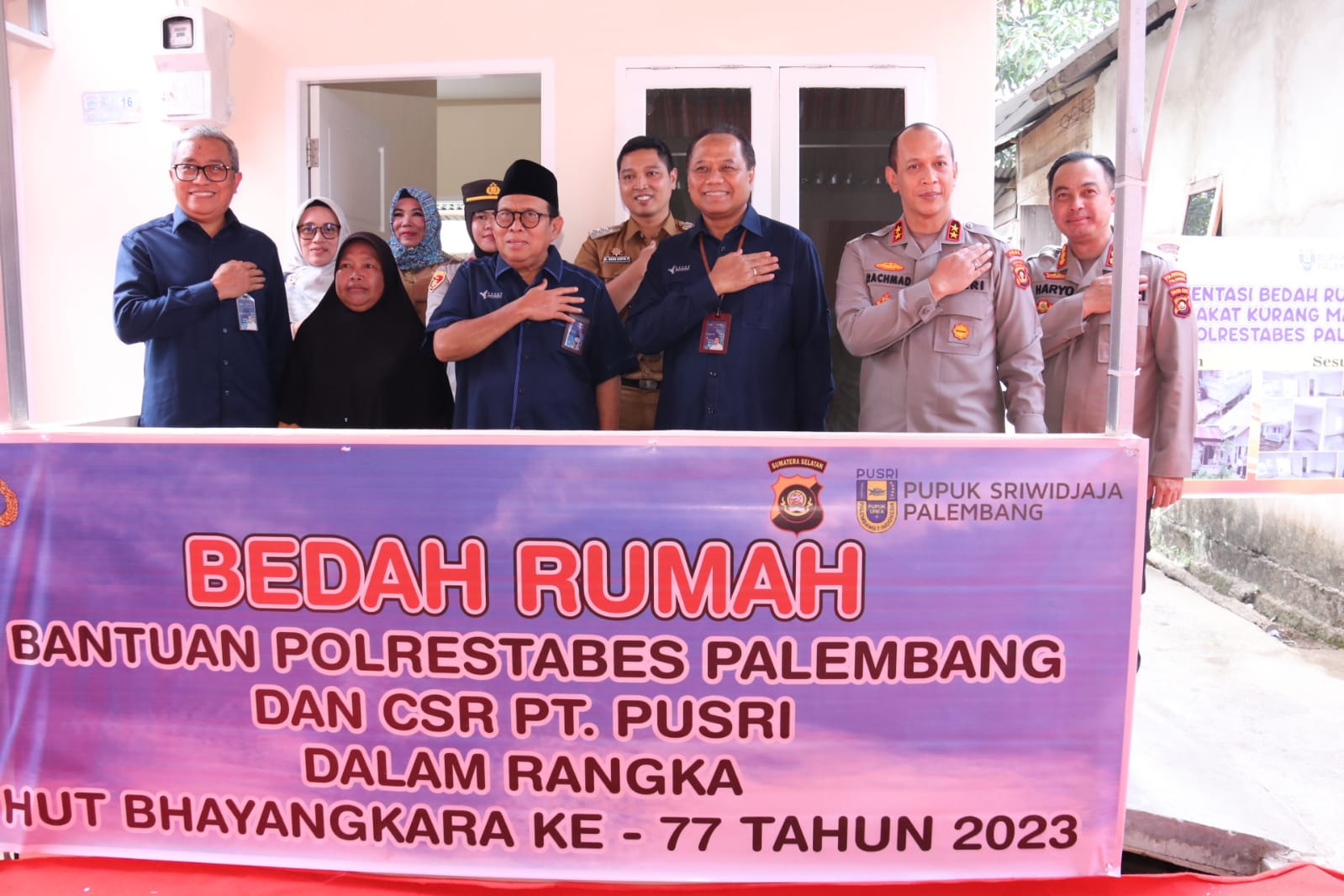 Ia menambahkan “Selamat kepada ibu Jahroh dan terimalah persembahan rumah yang kami bedah Bersama Polda Sumsel dan Polrestabes Palembang dan PT Pusri Palembang ″
