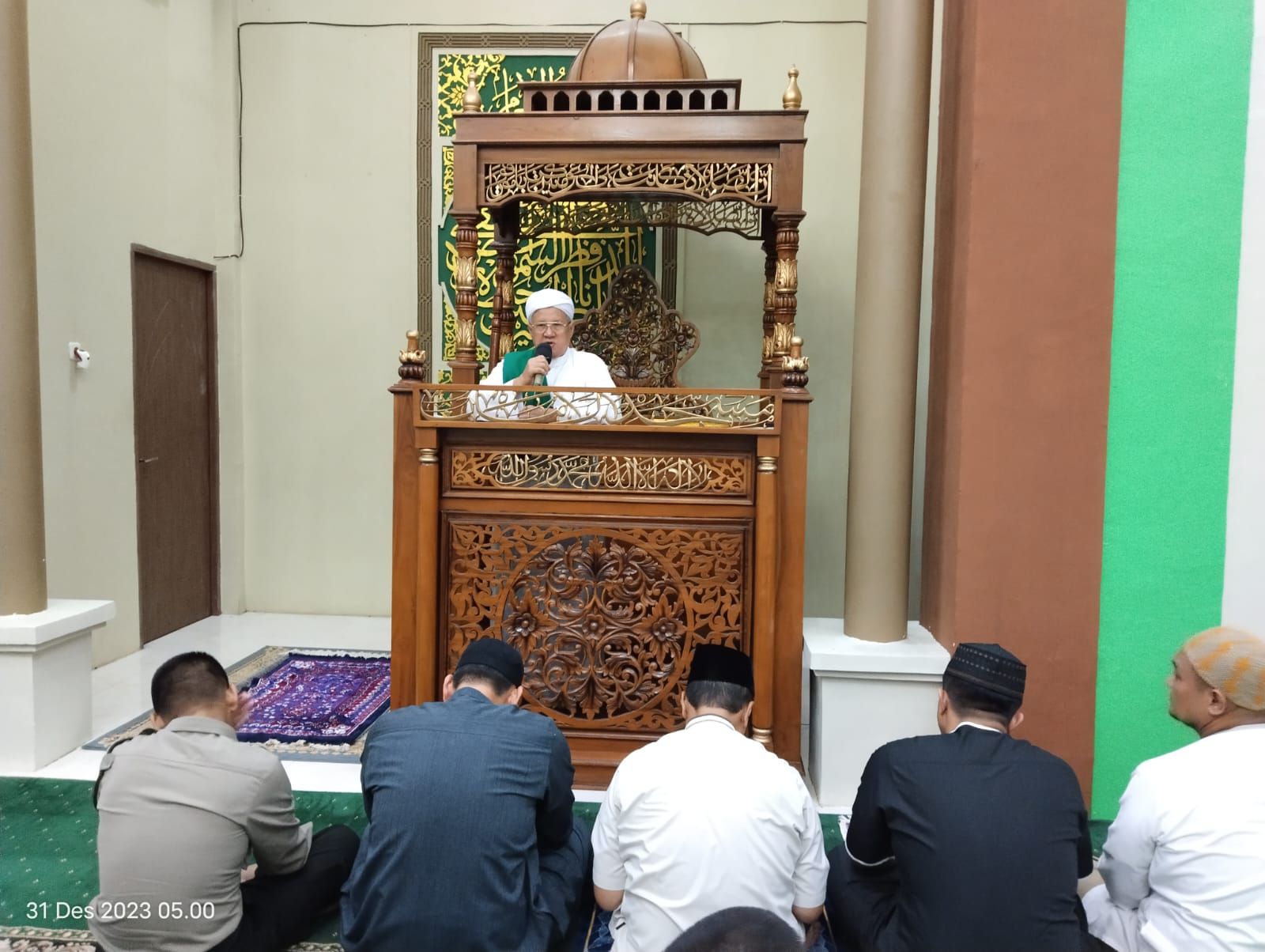Liputanabn.com | Palembang – Belasan Personel Bintara remaja (Baja) Polda Sumsel yang mendapat tugas Yanma Polda Sumsel melaksanakan kegiatan pembinaan rohani dan mental (Binrohtal) di Masjid Al aman Komplek Pakri pada Ahad 31 Desember 2023 pagi