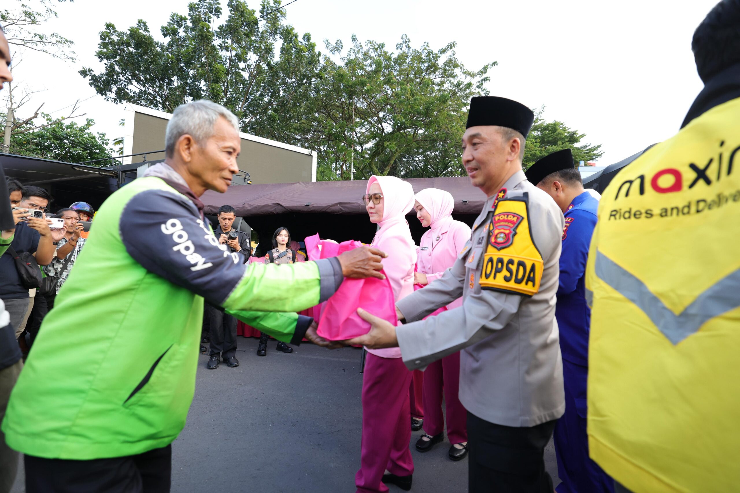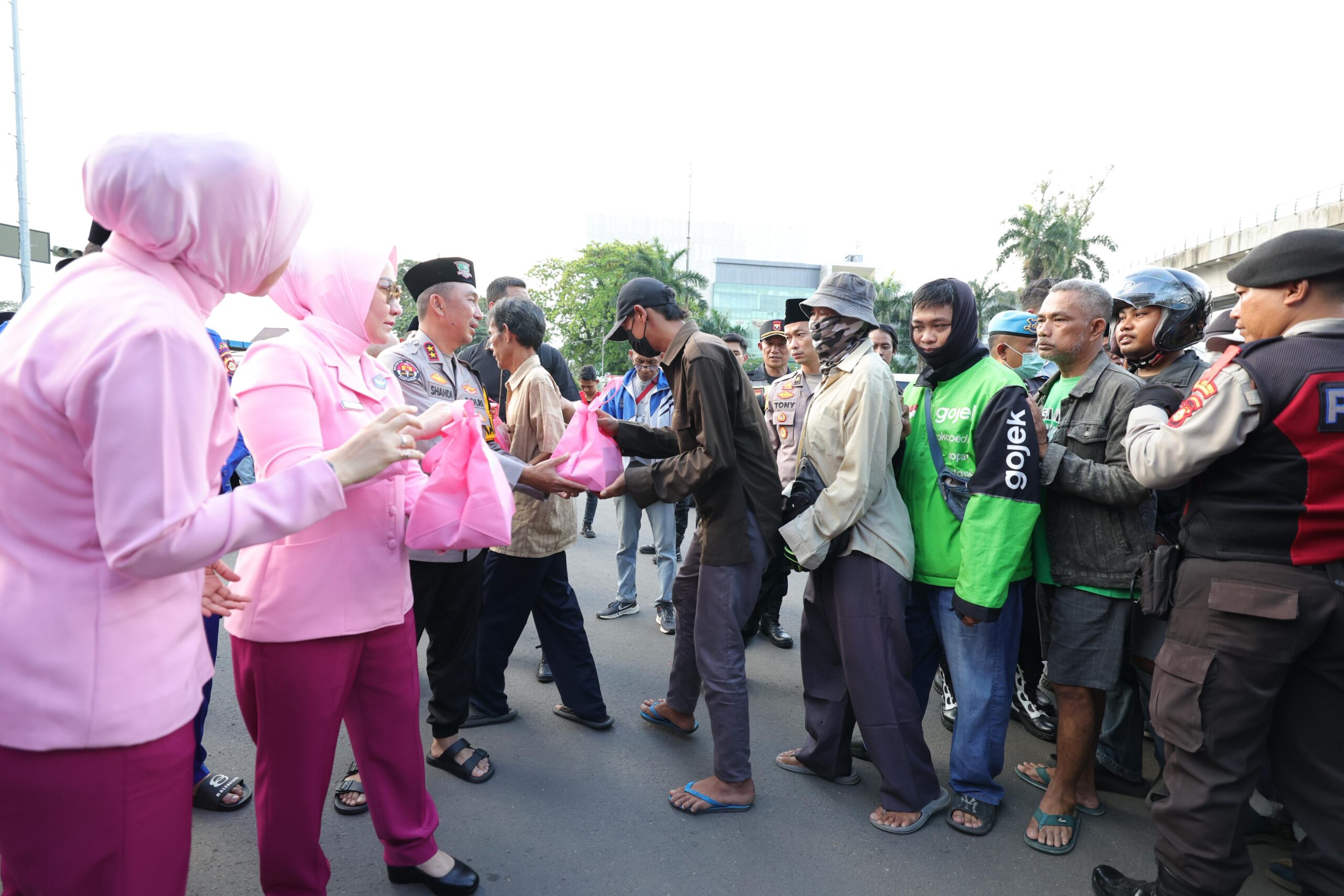 BERBAGI BERKAH RAMADHAN, KAPOLDA SUMSEL IRJEN POL SANDI NUGROHO DAN BHAYANGKARI SAPA PENGENDARA DI SIMPANG 5 DPRD