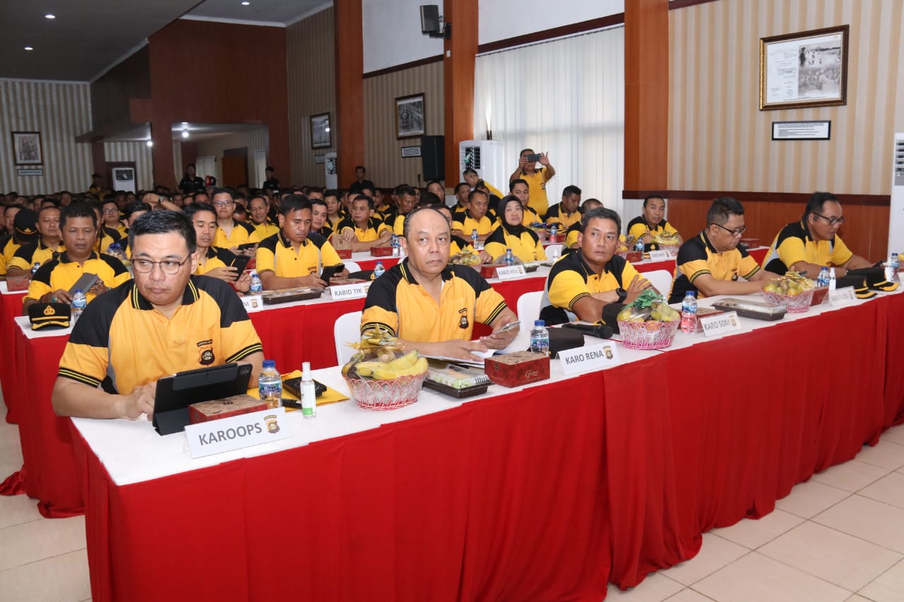 Liputanabn.com | Betung Banyuasin,- Kapolda Sumsel Irjen Pol.A.Rachmad Wibowo,SIk didampingi Wakapolda Sumsel Brigjen Pol M. zulkarnain,SIk,MSi Irwasda serta pejabat utama melaksanakan Arahan Kepada Personel Polda Sumsel, Kapolres,