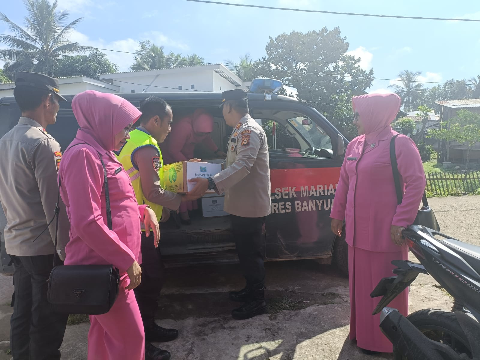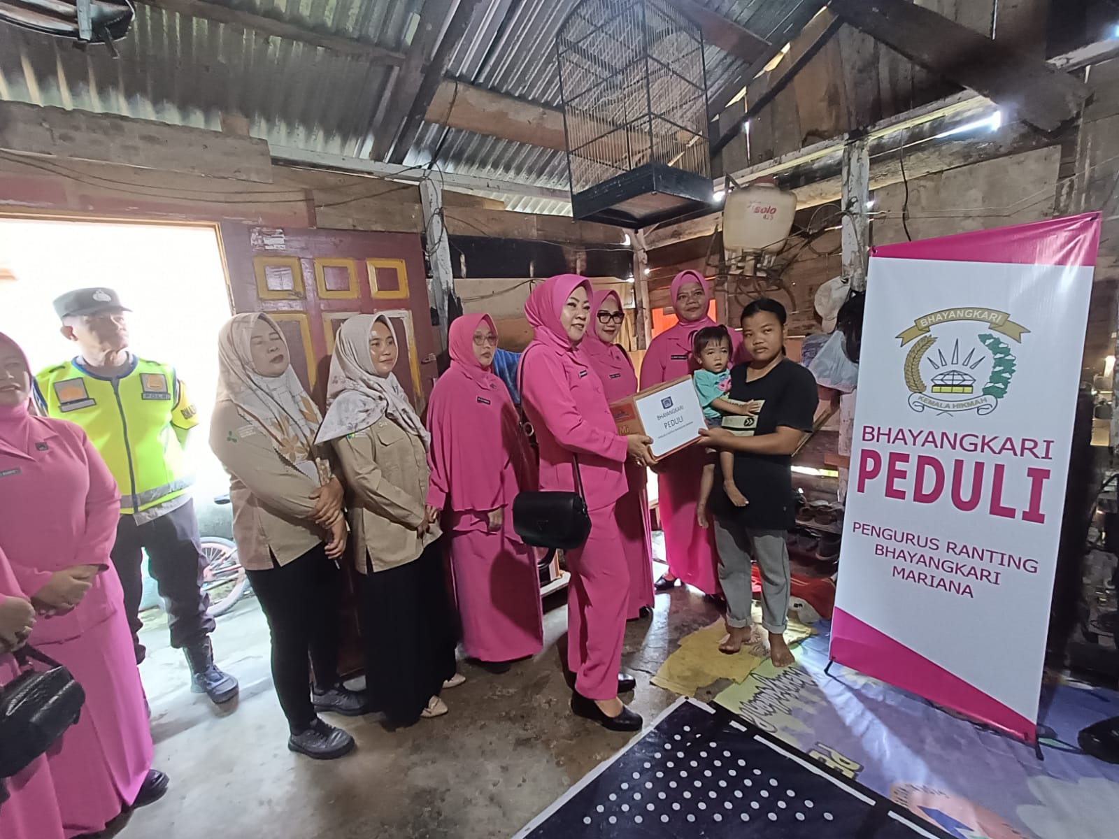 Ketua Bhayangkari Ranting Mariana Ny Suryani Marzuki bersama Pengurus Bhayangkari berkesempatan memberikan bantuan sosial kepada anak- anak yang berdampak stunting yang berada di Kec Banyuasin I.