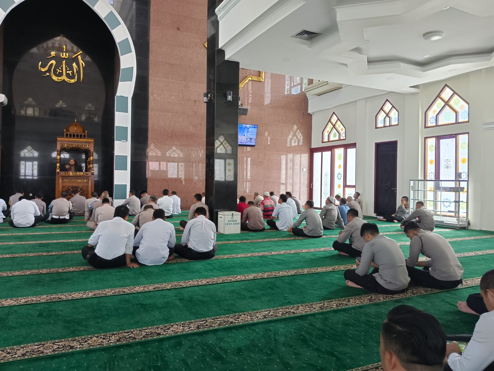 Sholat Dzuhur berjamaah dilanjutkan tausiyah oleh ustad Jaka Perkasa LC,M Ag dimasjid Assaadah Mapolda Sumsel KM 4 Palembang.senin 17 April 2023 siang