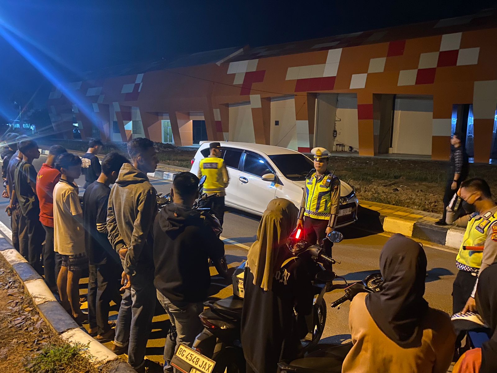 Dalam pelaksanaannya, Personil gabungan melakukan pemeriksaan kendaraan R2 yang terlibat balap liar di depan rumah dinas Bupati Banyuasin serta melakukan pemeriksaan surat menyurat dan kelengkapan kendaraan R2.