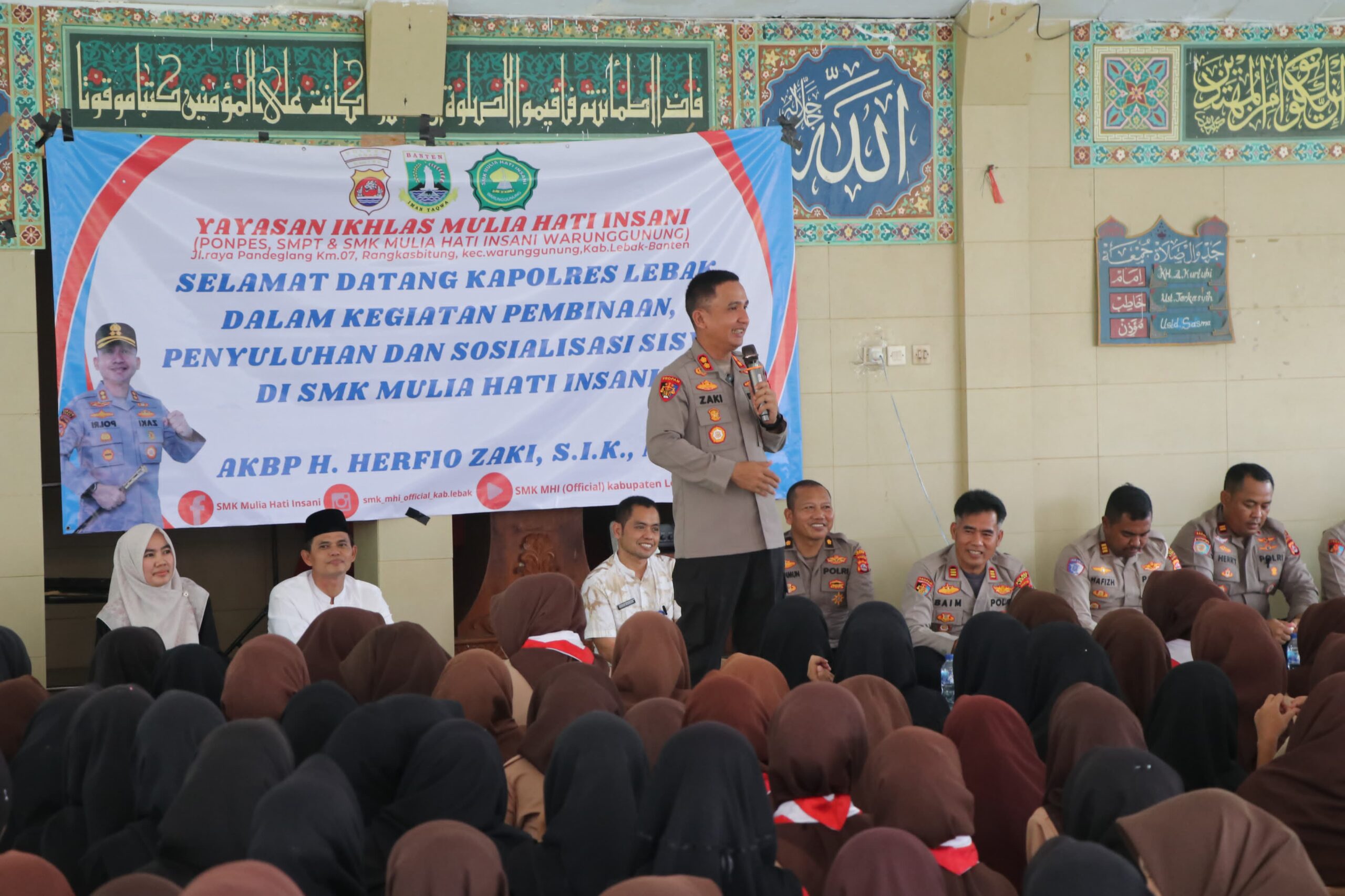 Cegah Kenakalan Remaja, Kapolres Lebak Laksanakan Sosialisasi di SMK Mulia Hati Insani Warunggunung