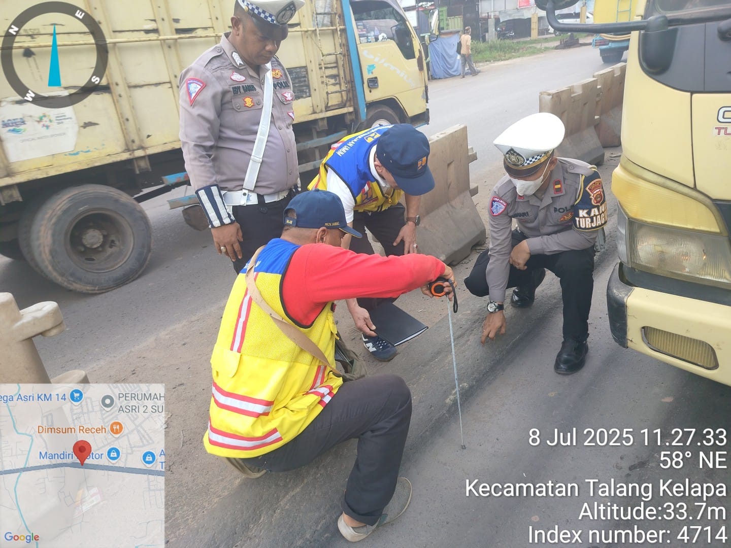 Usai melakukan penelitian dan pemeriksaan lokasi saat dimintai keterangan Kasat lantas Polres Banyuasin melalui Kanit Turjagwali Satlantas Polres Banyuasin Ipda Jumhari Romadhon menyebutkan hasil yang didapat , dilapangan yakni pengecekkan dan pengukuran kerusakan jalan aspal, kemudian- mendatakan dan dokumentasi kendaraan penyebab kerusakan jalan ucap mantan Personel Bidhhumas Polda Sumsel ke awak media Rabu 9/07/2025 pagi
