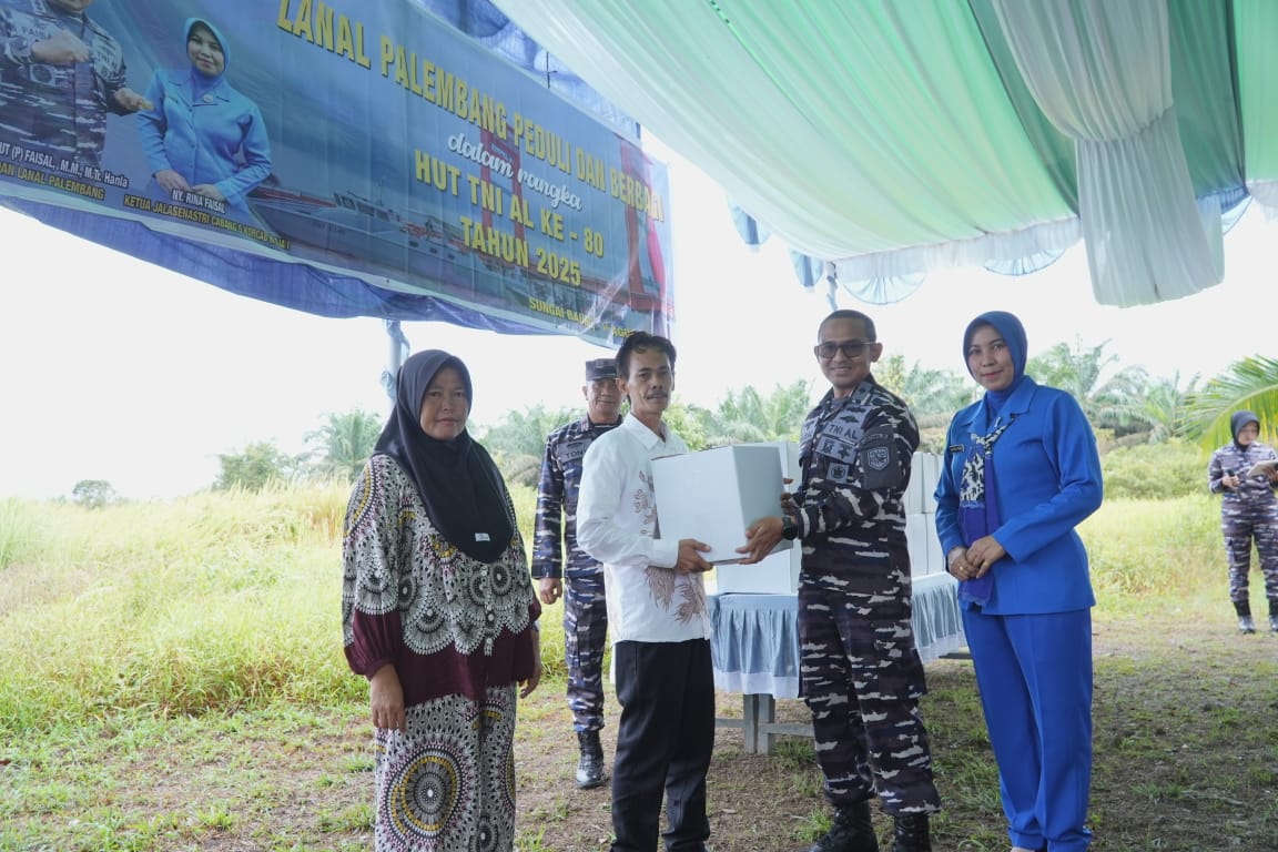 Liputanabn.com | PALEMBANG – Komandan Pangkalan TNI Angkatan Laut (Lanal) Palembang, Kolonel Laut (P) Faisal, M.M., M.Tr.Hanla, didampingi Ny. Rina Faisal, melaksanakan kunjungan kerja ke Pos Pembinaan Potensi Maritim (Pos Binpotmar) TNI AL Sungai Baung, Desa Bukit Batu, Kecamatan Air Sugihan, Kabupaten Ogan Komering Ilir (OKI).