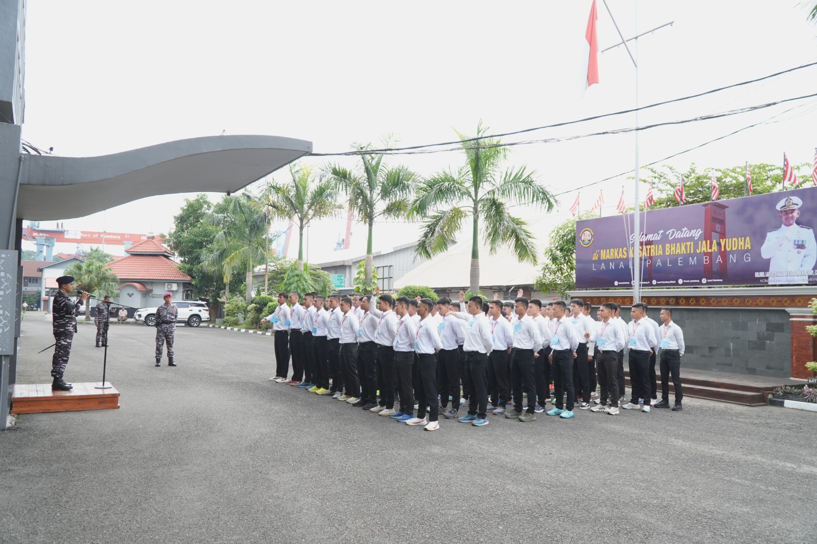 Upacara tersebut diikuti oleh para Perwira, Tamtama, panitia seleksi penerimaan, Pegawai Negeri Sipil (PNS) Lanal Palembang serta Cata PK TNI AL TA 2025.