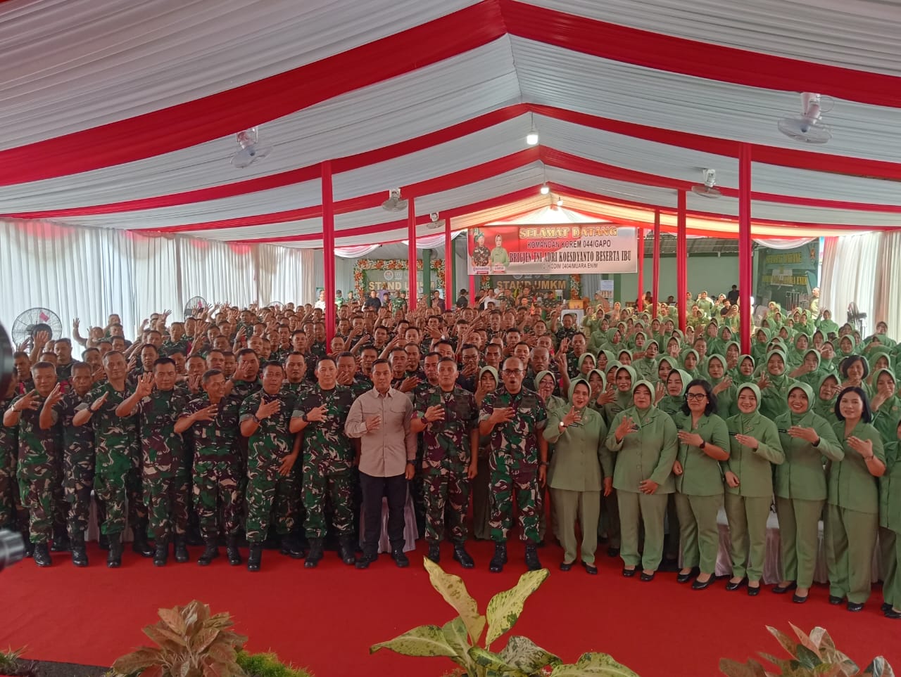 kedatangan Danrem juga diiringi rombongan pejabat Korem 044/Gapo,