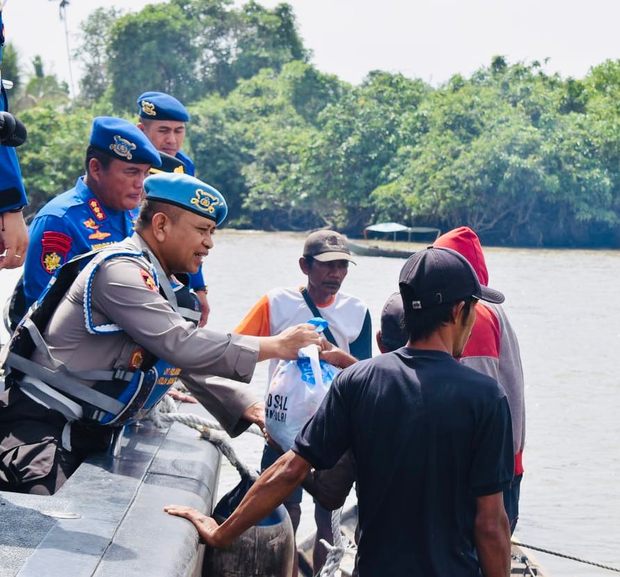 Dengan Kapal Ditpolairud, Karo Provoost Div Propam Polri Susuri Sungai Musi Berbagi Sembako ke Nelayan dan Masyarakat