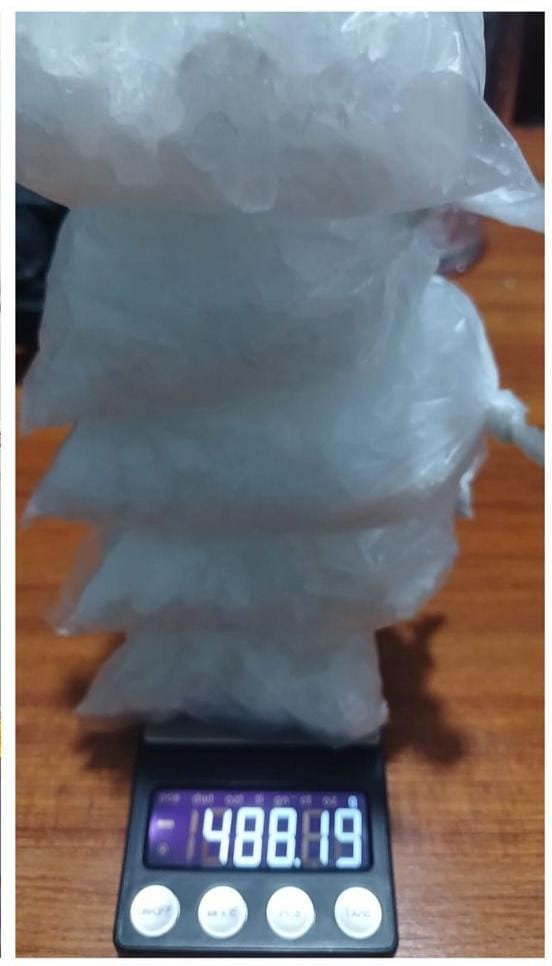 Menurut AKP Sutedjo, saat itu anggota Resnarkoba mengamankan pelaku dengan cara menyamar sebagai pembeli (undercover buy) dan didapati barang bukti 1 buah tas ransel warna navy yang berisikan 5 paket yang diduga narkotika jenis sabu dengan berat bruto 488,19 gram.
