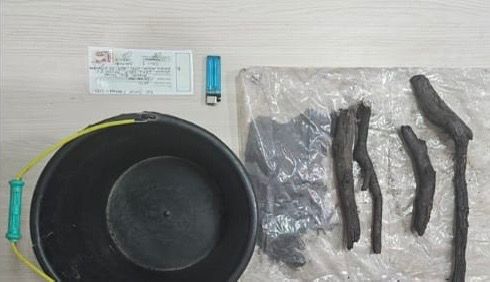 Adapun barang bukti (BB) yang turut disita berupa 1 buah korek api warna biru merk Tokai, 1 buah ember plastik warna hitam, 1 lembar surat kwitansi jual beli tanah, Kayu ranting bekas bakaran.