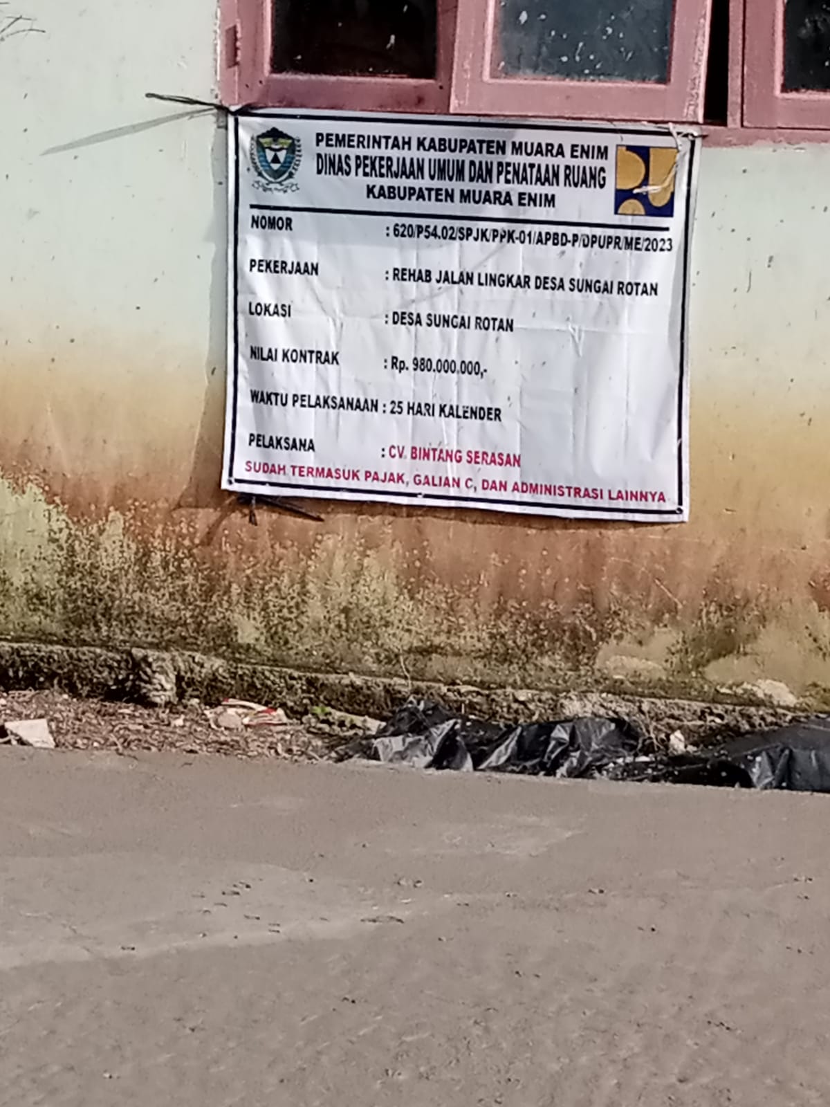 Proyek pekerjaan jalan lingkar menggunakan sumber dana PUPR Kabupaten Muara Enim Tahun 2023, yang saat ini baru saja dikerjakan oleh kontraktor, dengan judul, Rehab Jalan Lingkar desa Sungai Rotan, dengan Anggaran ,cukup fantastis Rp 980,000.000.00 ,dengan pelaksana CV . Bintang Serasan,