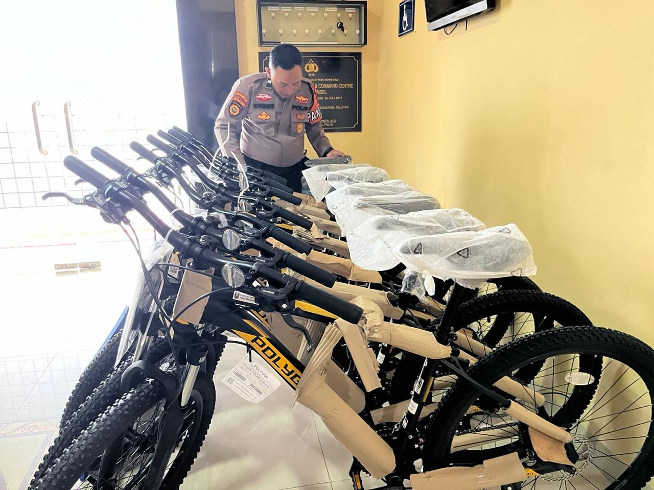Direktorat Pam Obvit Polda Sumsel Mendapat Bantuan 10 Sepeda Pancal dari PT.Pupuk Sriwidjaja Palembang