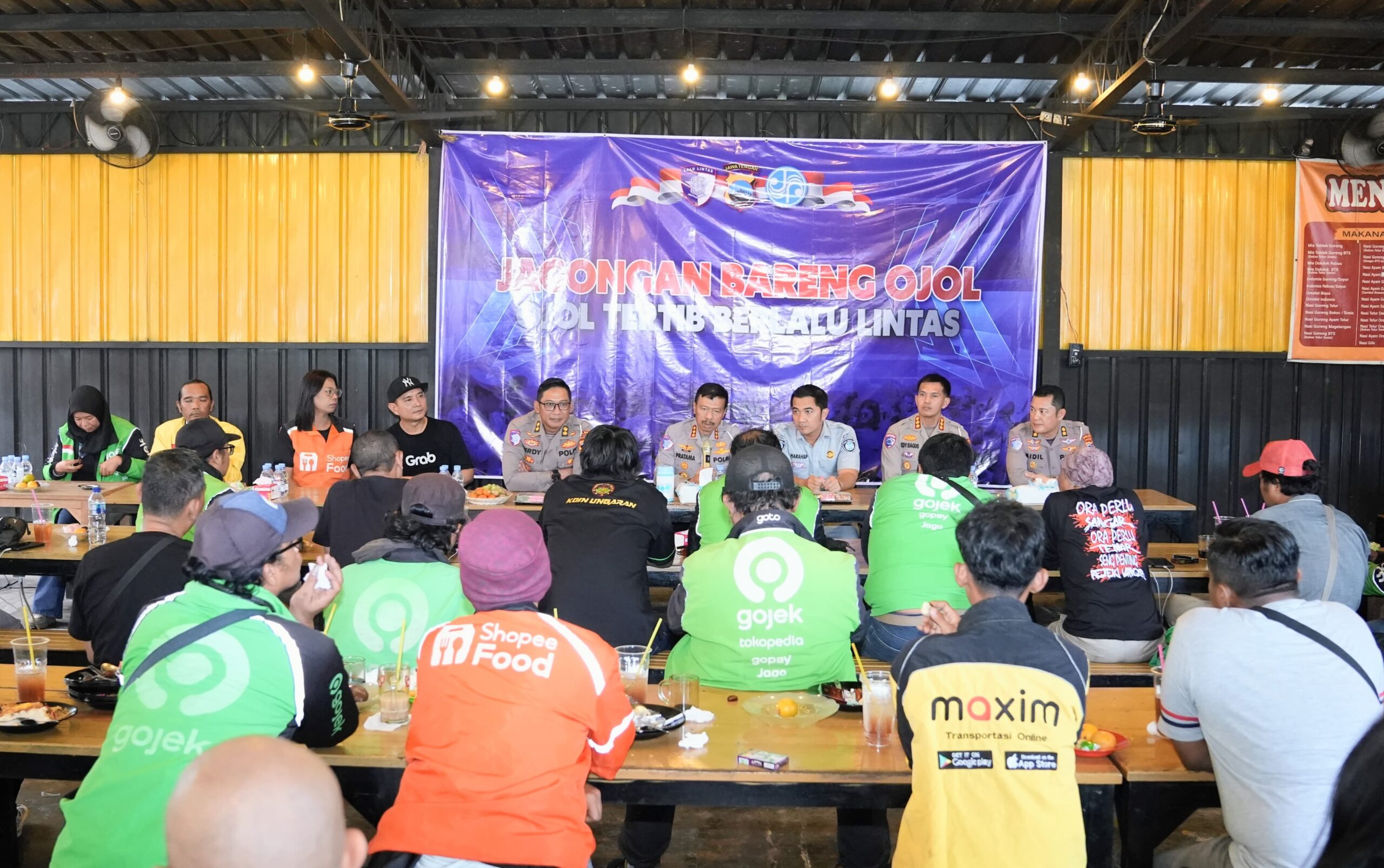 Liputanabn.com | Semarang Jateng – Sebanyak sekitar 60 pengemudi ojek online dan driver online dari berbagai komunitas di Kota Semarang berkumpul dalam Kegiatan Polantas Menyapa bertemakan “Jagongan Bareng Ojol, Ojol Tertib Lalu Lintas”.