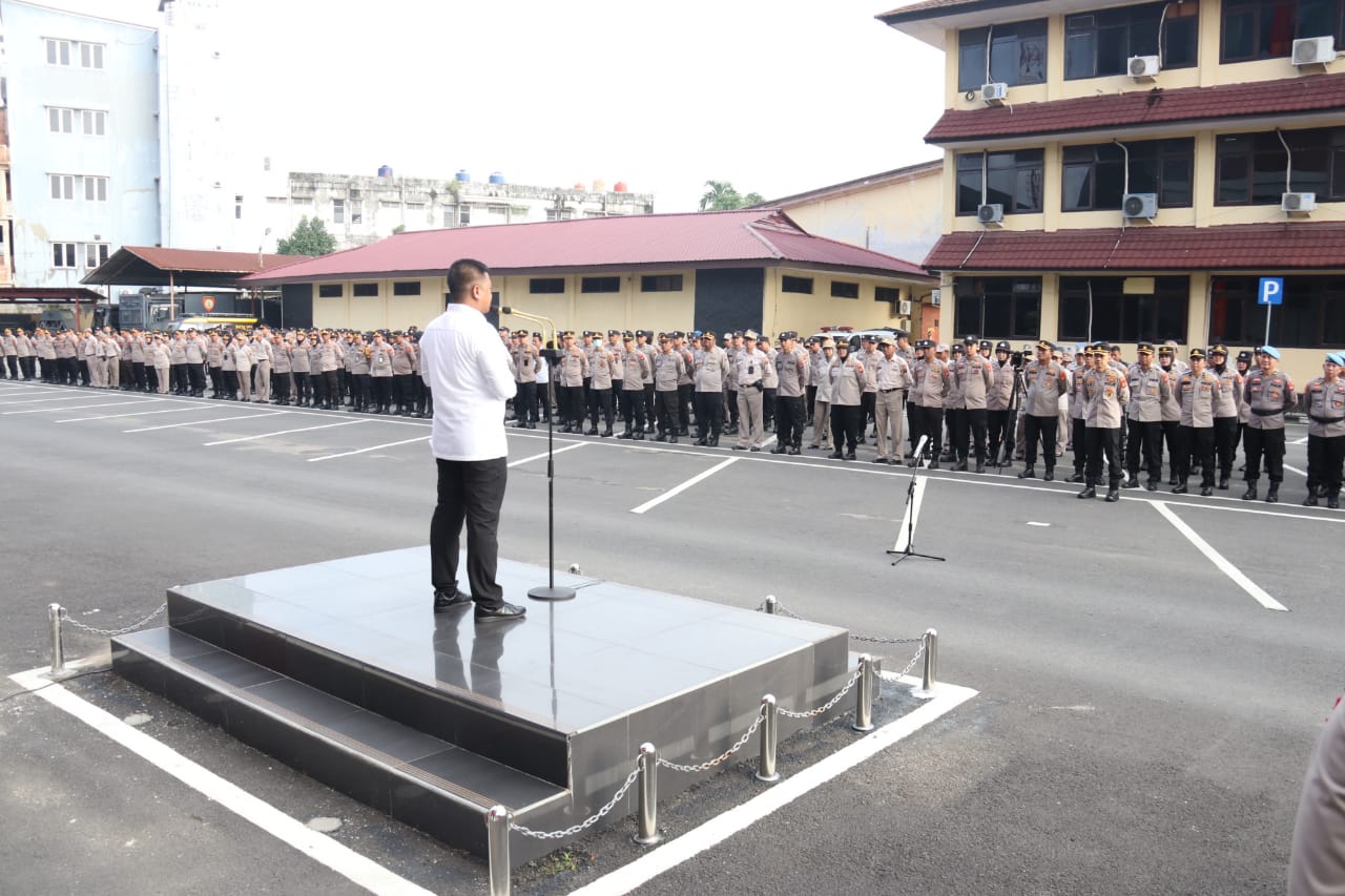 Liputanabn.com | Palembang – Dirreskrimsus Polda Sumsel Kombes Pol Bagus Suropratomo Oktobrianto pimpin Apel pagi dilapangan Mapolda Sumsel Jalan Jenderal Sudirman KM 4 Palembang Senin 29Januari 2024