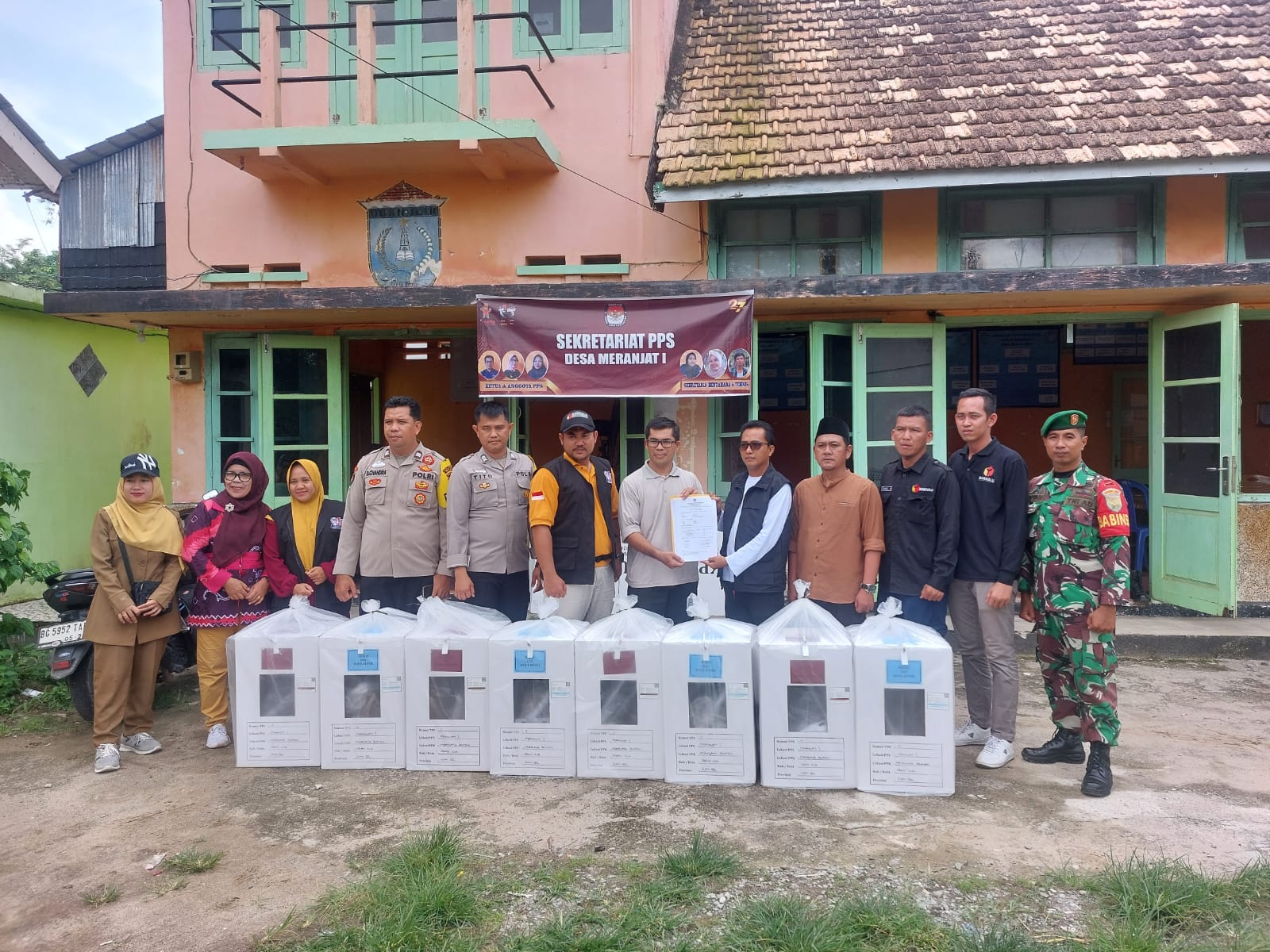 Setelah diterima, logistik langsung disimpan di gudang penyimpanan desa yang digembok oleh petugas PPK, personel pengamanan, dan pengawas pemilu. Personel pengamanan yang bertugas di Desa Meranjat 1 adalah Aiptu Devi Candra, S.H., dan Aipda Tito, S.H., yang memastikan keamanan hingga hari pemungutan suara.