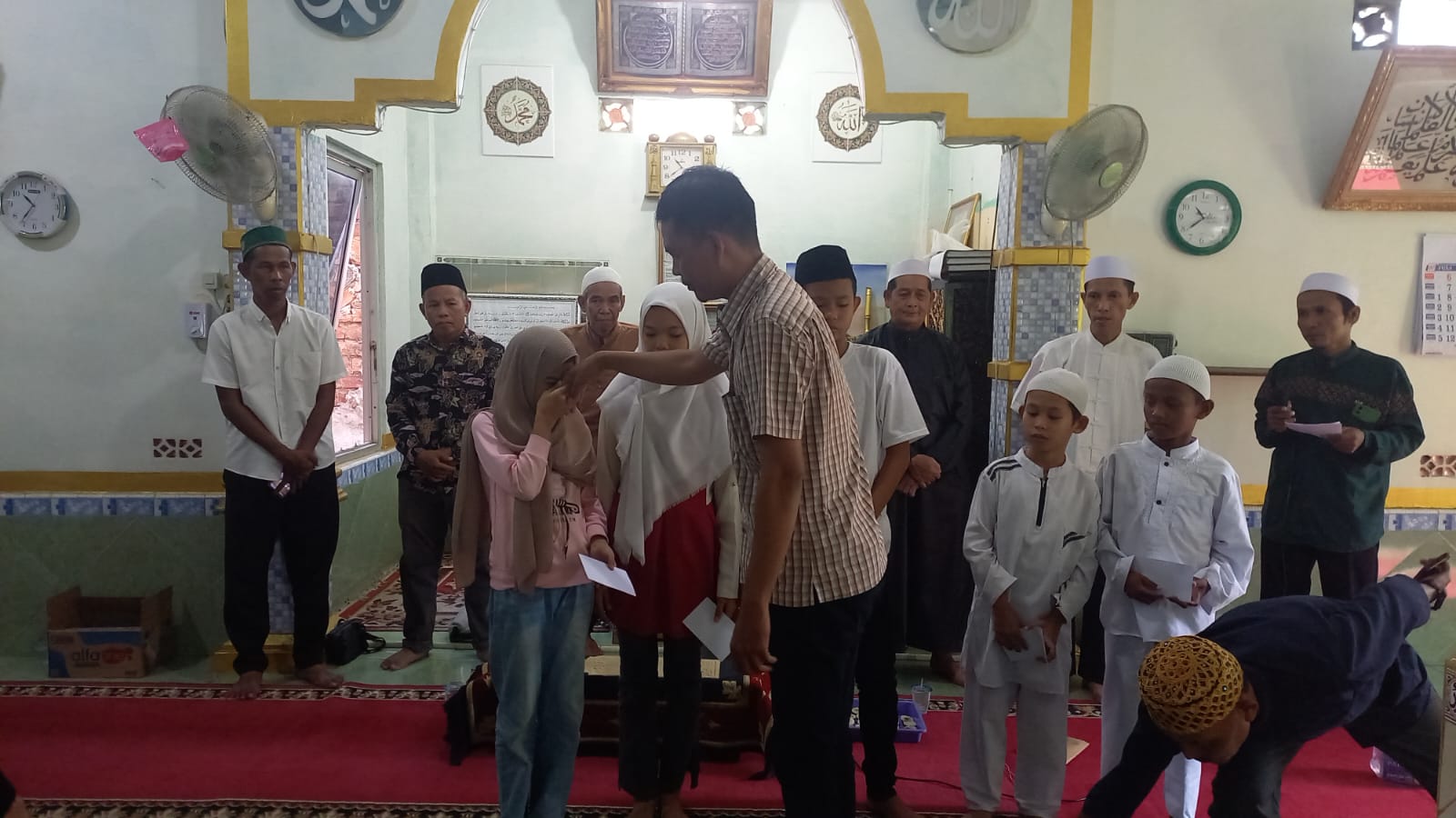 Pemberian santunan dilakukan di Musholla Al-Ikhlas Lorong Kebon Gede 1, 32 Ilir, Ilir Barat II Palembang, Minggu (6/7/2025).