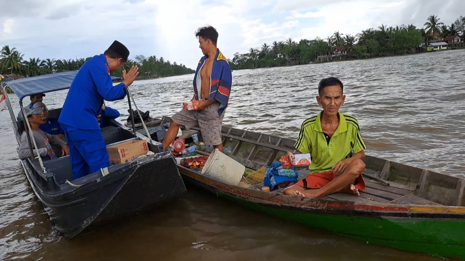 Mereka membagikan takjil dan sembako kepada masyarakat nelayan dan pengguna transportasi air yang melintas di perairan Simpang PU.