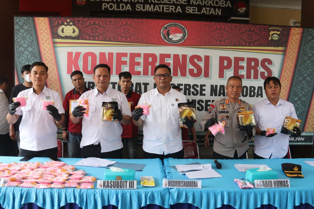 “Kami masih mengejar satu orang bandar besar yang memasok dan mengendalikan sabu dan pil ekstasi di wilayah Ilir,”kata AKBP Harissandi kepada wartawan saat press rilis di Ditresnarkoba Polda Sumsel Rabu (11/6/2025).