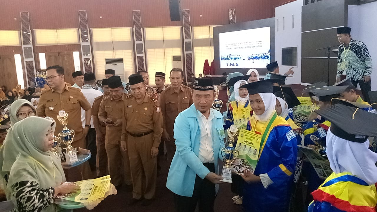 Sementara itu, Pj Bupati Banyuasin, H. Hani Syopiar Rustam, diwakili oleh Asisten I Pemerintahan Pemkab Banyuasin, Izromaita dalam sambutannya mengatakan Selamat kepada Ustadz dan Ustadzah yang telah berhasil memilih para santriwan dan santriwati yang diwisuda hari ini.