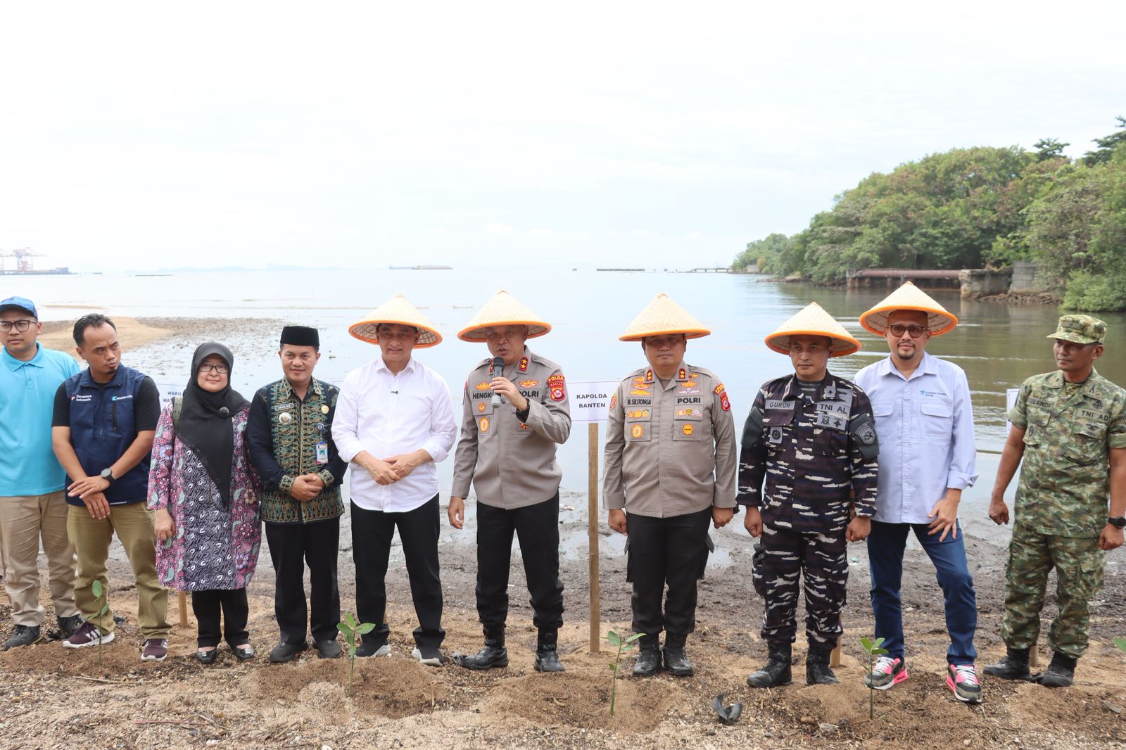 Kegiatan ini turut dihadiri Wakil Gubernur Banten Achmad Dimyati Natakusumah, para Pejabat Utama Polda Banten, Kapolres Cilegon AKBP Dr. Martua Raja Taripar Laut Silitonga, serta unsur Forkopimda Kota Cilegon. Dalam kegiatan tersebut dilakukan penanaman sebanyak 1.000 bibit mangrove sebagai upaya nyata menjaga kelestarian lingkungan pesisir.