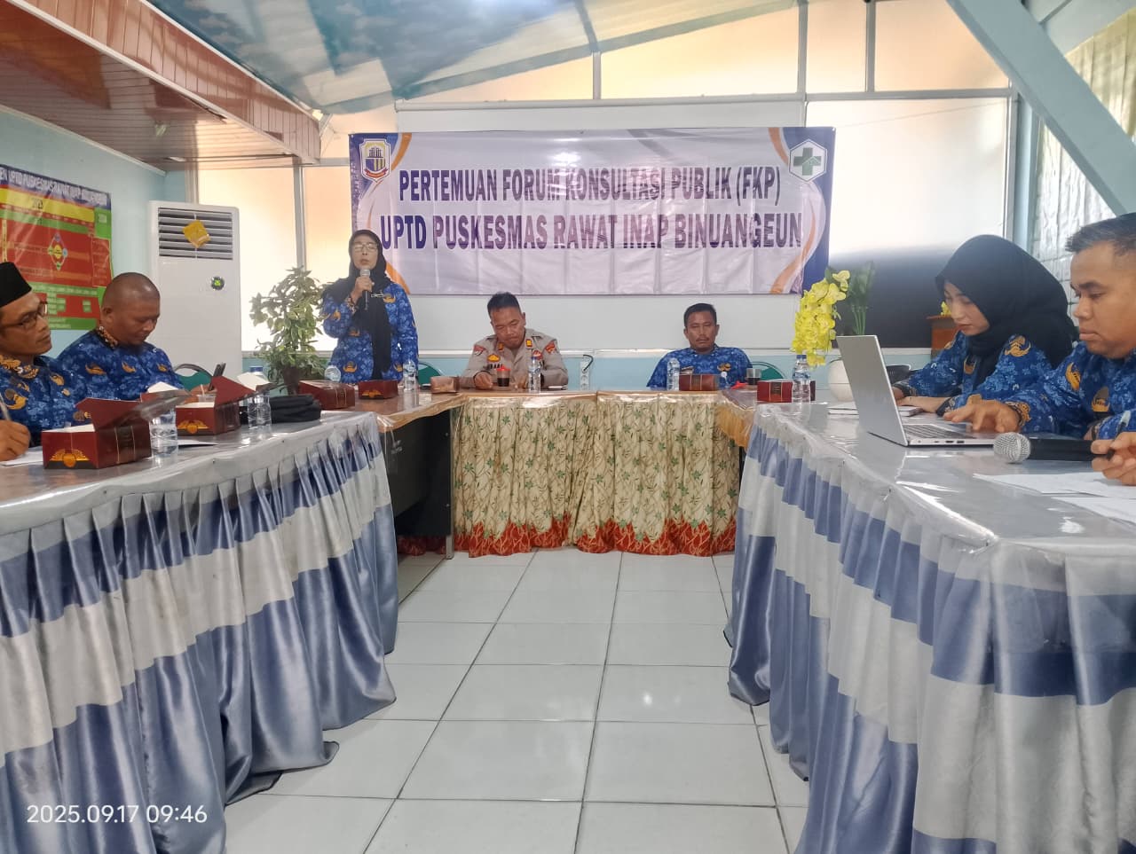 Liputanabn.com | Lebak Banten  Rabo 17 September 2025 — berlangsung Pertemuan Forum Konsultasi Publik (FKP) yang diselenggarakan di Aula Puskesmas Binuangeun, desa Muara, Kecamatan Wanasalam, Kabupaten Lebak. Acara ini dipimpin langsung oleh Pelaksana Tugas (PLT) Camat Wanasalam, Cece Saputra S.IP MM.