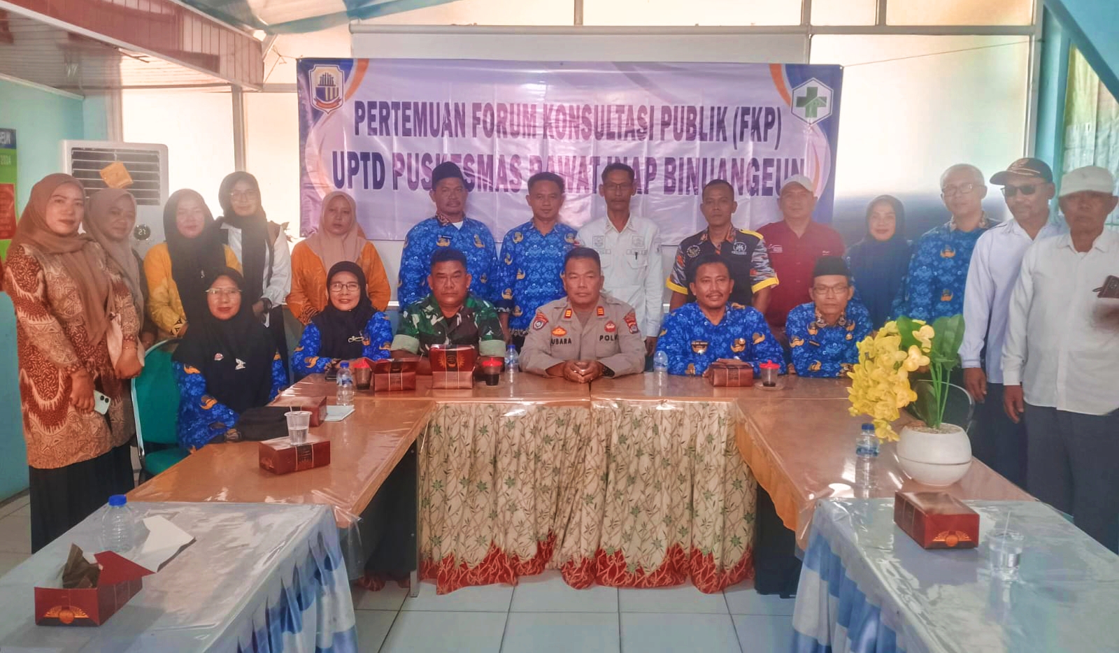 Sementara itu, Kepala Puskesmas Rawat Inap Binuangeun, Hj. Halimatusaadiah, menyampaikan bahwa Forum Konsultasi Publik ini adalah wadah untuk berkomunikasi terkait pelayanan publik di bidang kesehatan. Ia menegaskan pentingnya partisipasi masyarakat dalam menyampaikan kebutuhan dan keluhan agar pihak puskesmas dapat meningkatkan kualitas pelayanan.
