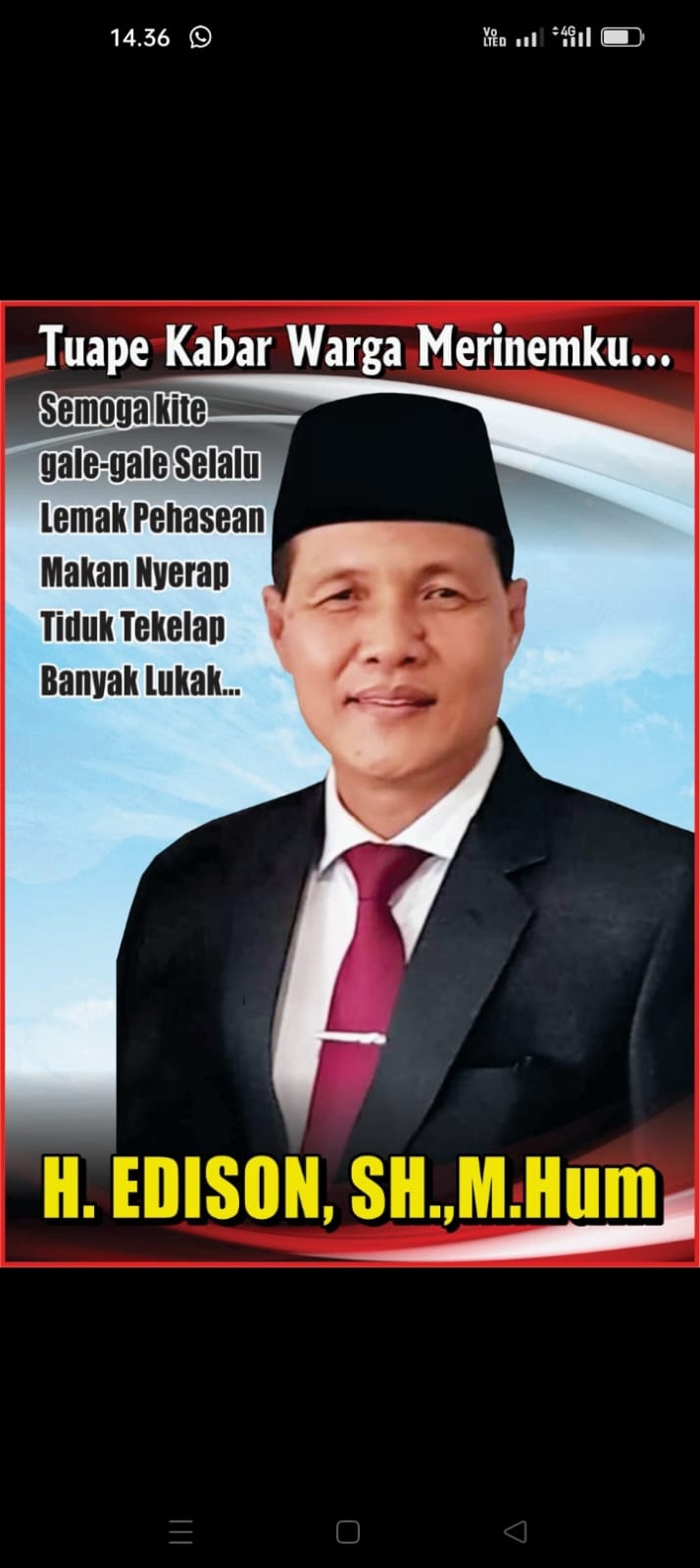 Atas nama Edison, SH M. Hum sekeluarga mengucapkan selamat ibadah puasa mohon maaf lahir dan batin. (Salim).