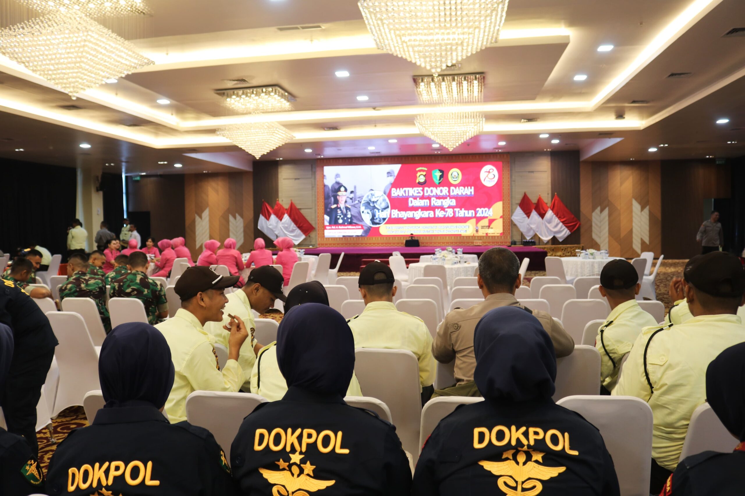 Kegiatan donor darah rangkaian Bhayangkara ke-78 Polda Sumsel merupakan sinergitas TNI / Polri dengan melibatkan Tiga Matra TNI (TNI AD,TNI AL,TNI AU) Personel Polri, Asn Polda Sumsel,perwakilan pengurus Bhayangkari Daerah Sumsel,Satuan Pengamanan (satpam);