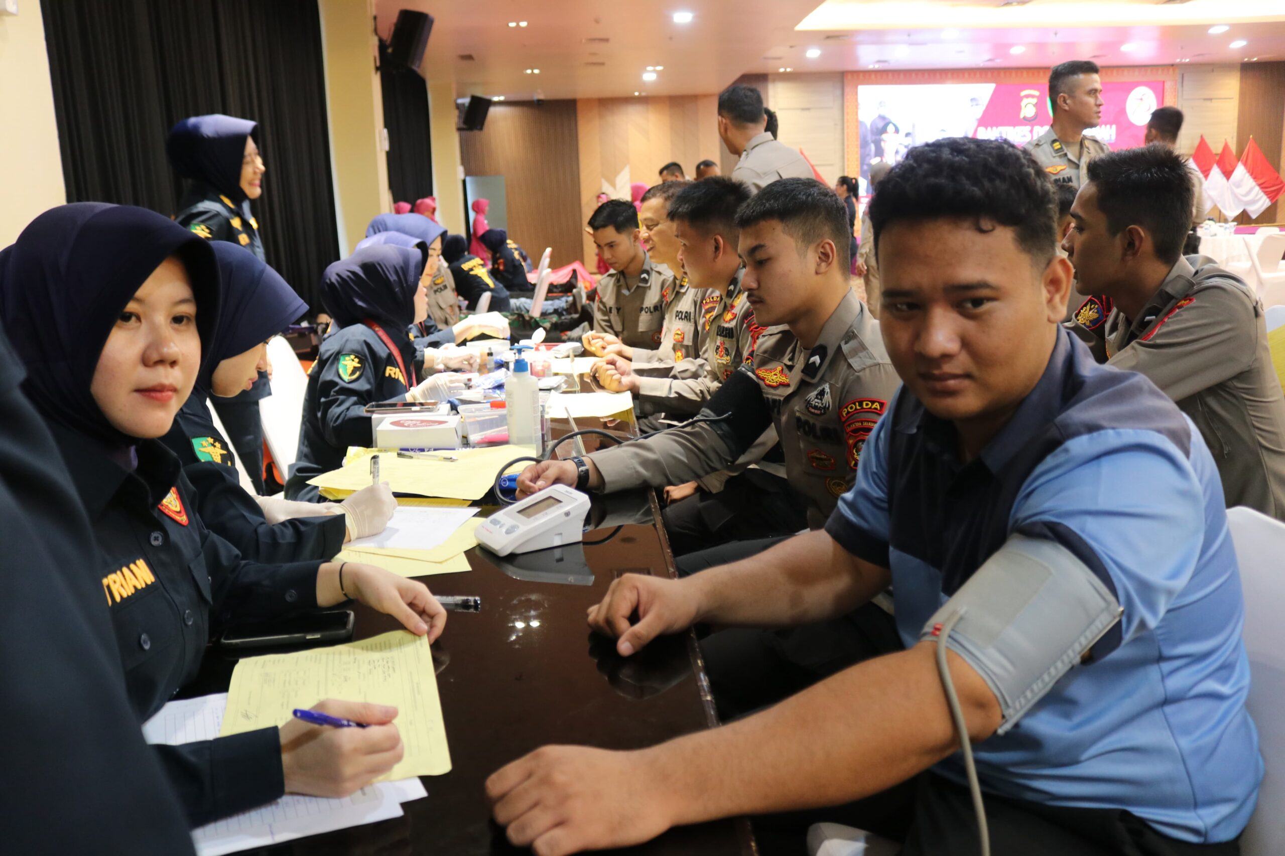 Pelaksanaan donor darah tersebut kerjasama Tim Medis Rumkit Bhayangkara Moh Hasan Polda Sumsel dengan Tim Medis PMI Kota Palembang Jelas Ari