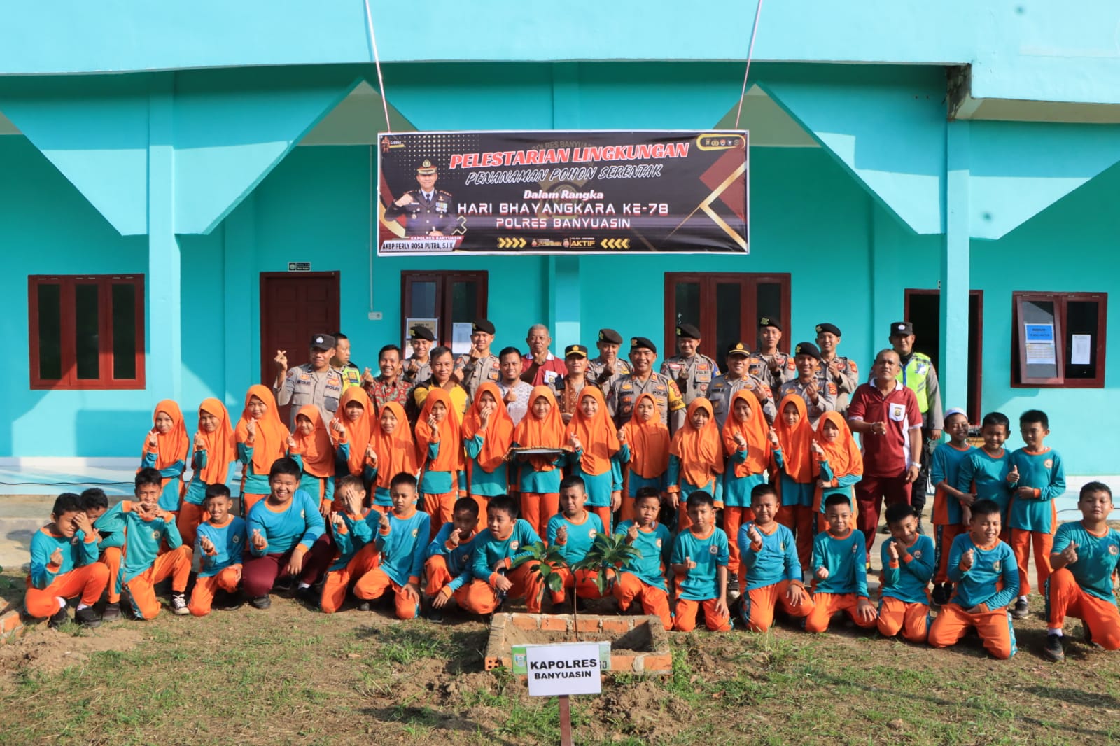 Liptanabn.com | BANYUASIN -; Dalam rangka memperingati HUT Bhayangkara ke-78, Polres Banyuasin Polda Sumsel, menggelar kegiatan penanaman pohon, Jum’at (7/6) pukul 08.00 WIB. Kegiatan ini dengan dasar Undang-undang No. 02 Tahun 2002 tentang Kepolisian Negara Republik Indonesia, dan Rangkaian pelaksanaan kegiatan menyambut hari Bhayangkara ke-78 Tahun 2024 Polres Banyuasin.