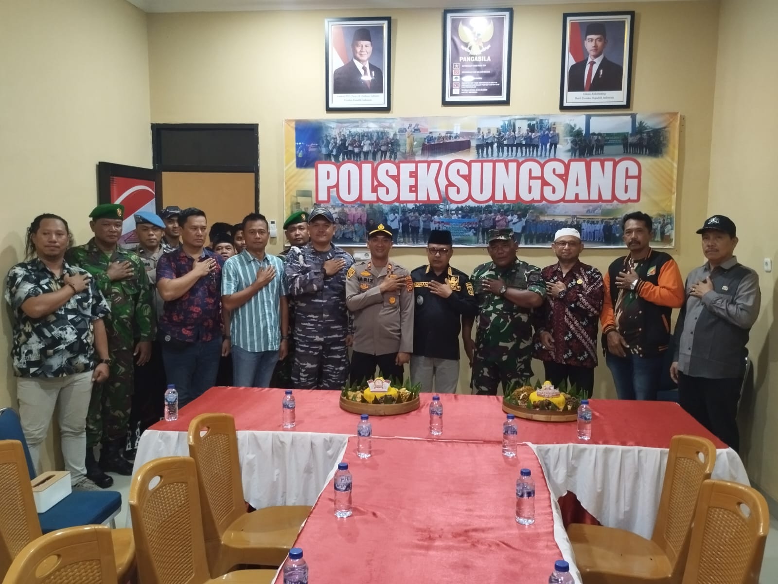 Kades Sungsang IV Romi Adi Candra, Danposal TNI AL Sungsang Letda Laut PM Fiter Ade Yolanda dan Pangkalan Sandar Pos Airud Sungsang Polda Sumsel diwakili Bripda Ahmad Hendro Wibowo SH yang juga turut serta mengunjungi Polsek Sungsang.