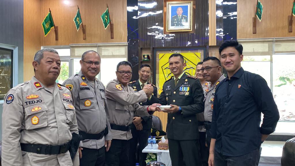 PJU Polres Banyuasin beserta Kanit Tipidkor dan Polwan Polres Banyuasin melaksanakan anjang sana ke Batalyon Zeni Kontruksi 12 dalam rangka mengucapkan selamat HUT TNI ke 78.