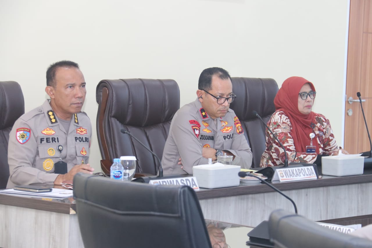 Liputanabn.com | Palembang – Wakapolda Sumsel Brigjen Pol M.Zulkarnain,SIK,MSi, Irwasda Kombes Pol Feri Handoko Soenarso SH SIK bersama PJU Polda Sumsel dan Kapolres/Tabes , Kapolsek/Ta jajaran Polda Sumsel ikuti rapat secara Virtual persiapan Gerakan Pangan Murah Polri dipimpin Irwasum Polri diruang Vidcon lantai II Mapolda Sumsel Jalan Jendral Sudirman Palembang Kamis 07/08/2025 siang